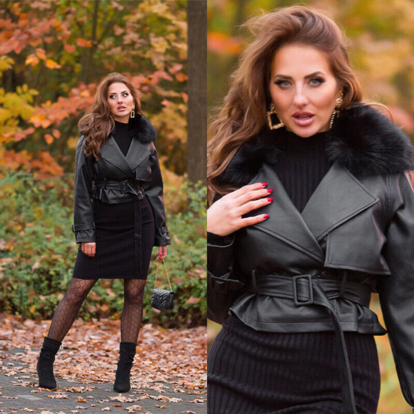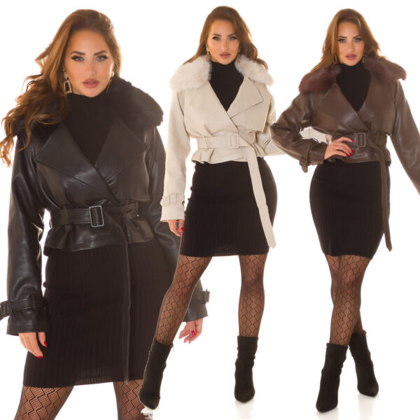 Front material in faux leather, back in stretch fabric with closure given by snap buttons