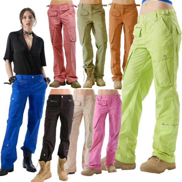 Pantalone cargo donna multitasche taglio a stivale bootcut 100% cotone