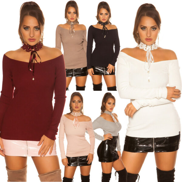Maglione maglia collare crochet pizzo scollo carmen barca