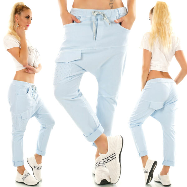 Pantaloni donna tempo libero harem turca cavallo basso Baggy cargo cotone