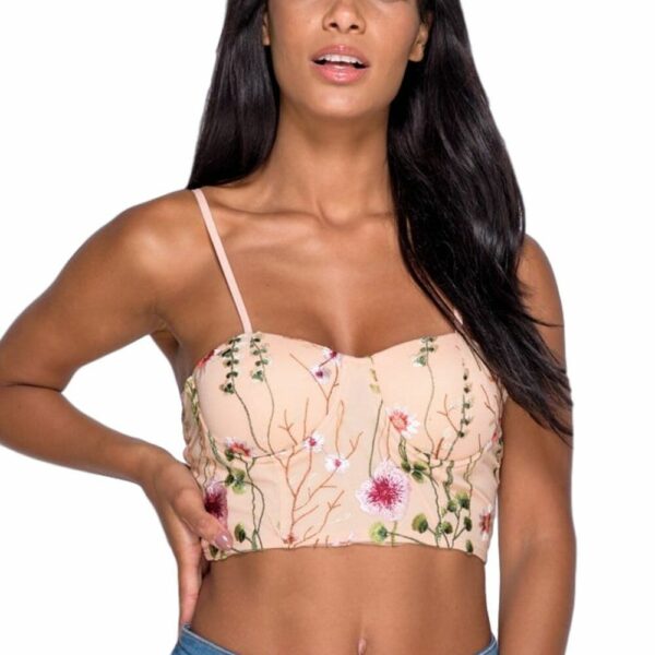 Reggiseno Top balconcino ricamato floreale imbottito sottogiacca sexy