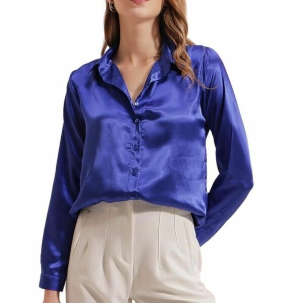 Camicia donna basic effetto raso tessuto lucido bottoni manica lunga
