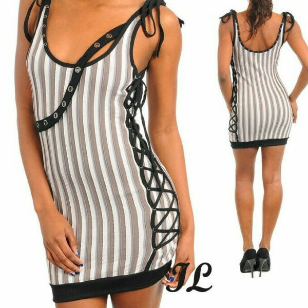 Mini abito corto donna righe verticali stringato