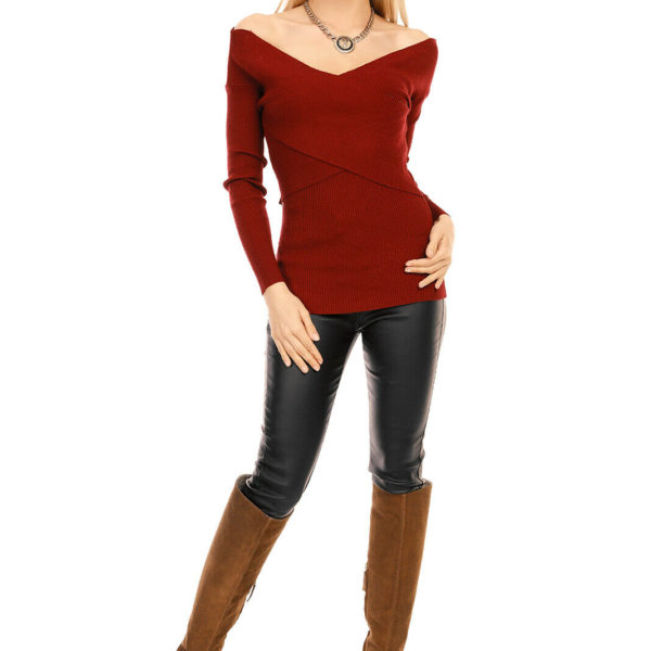 Neckline, hem and cuff edge in black knit