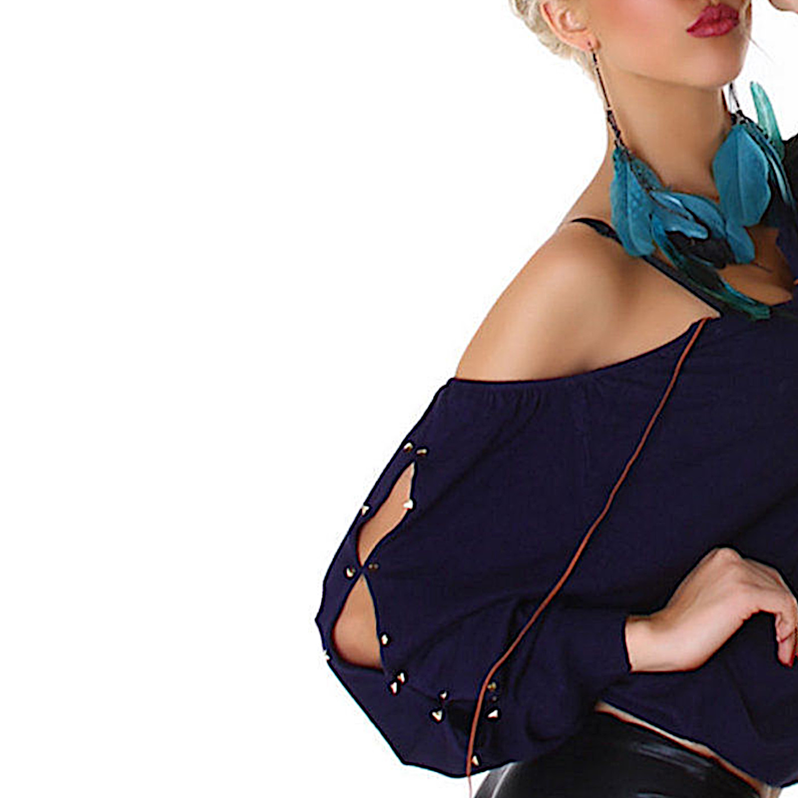 Maniche lunghe con spacchi ,decorate da borchie dorate a punta