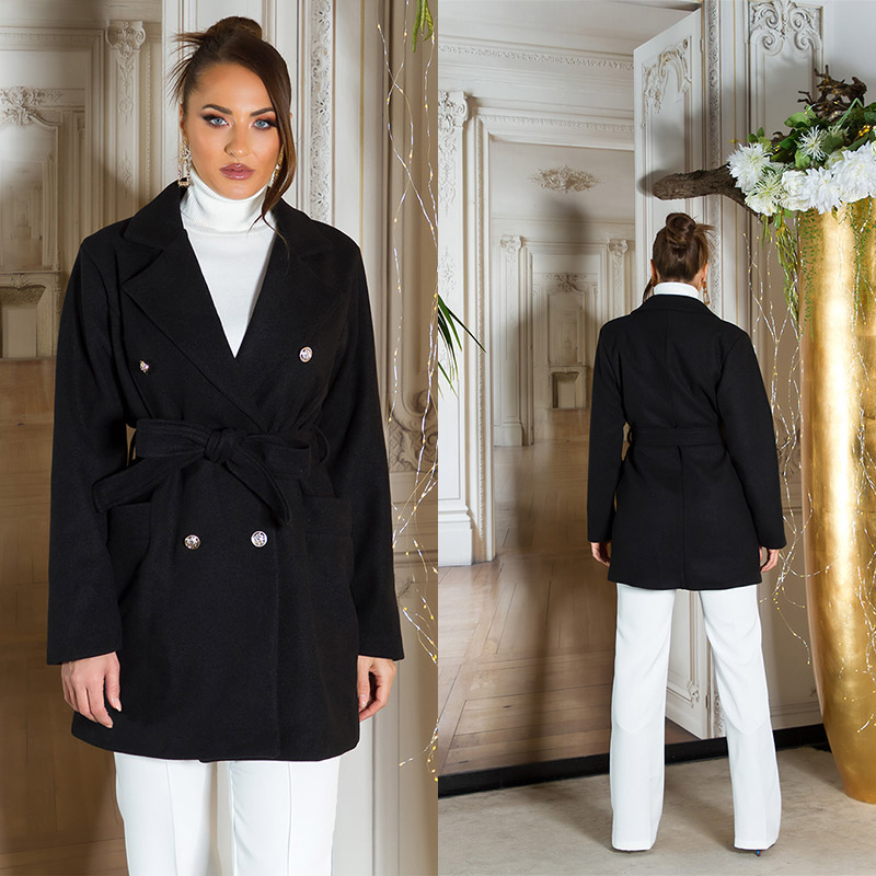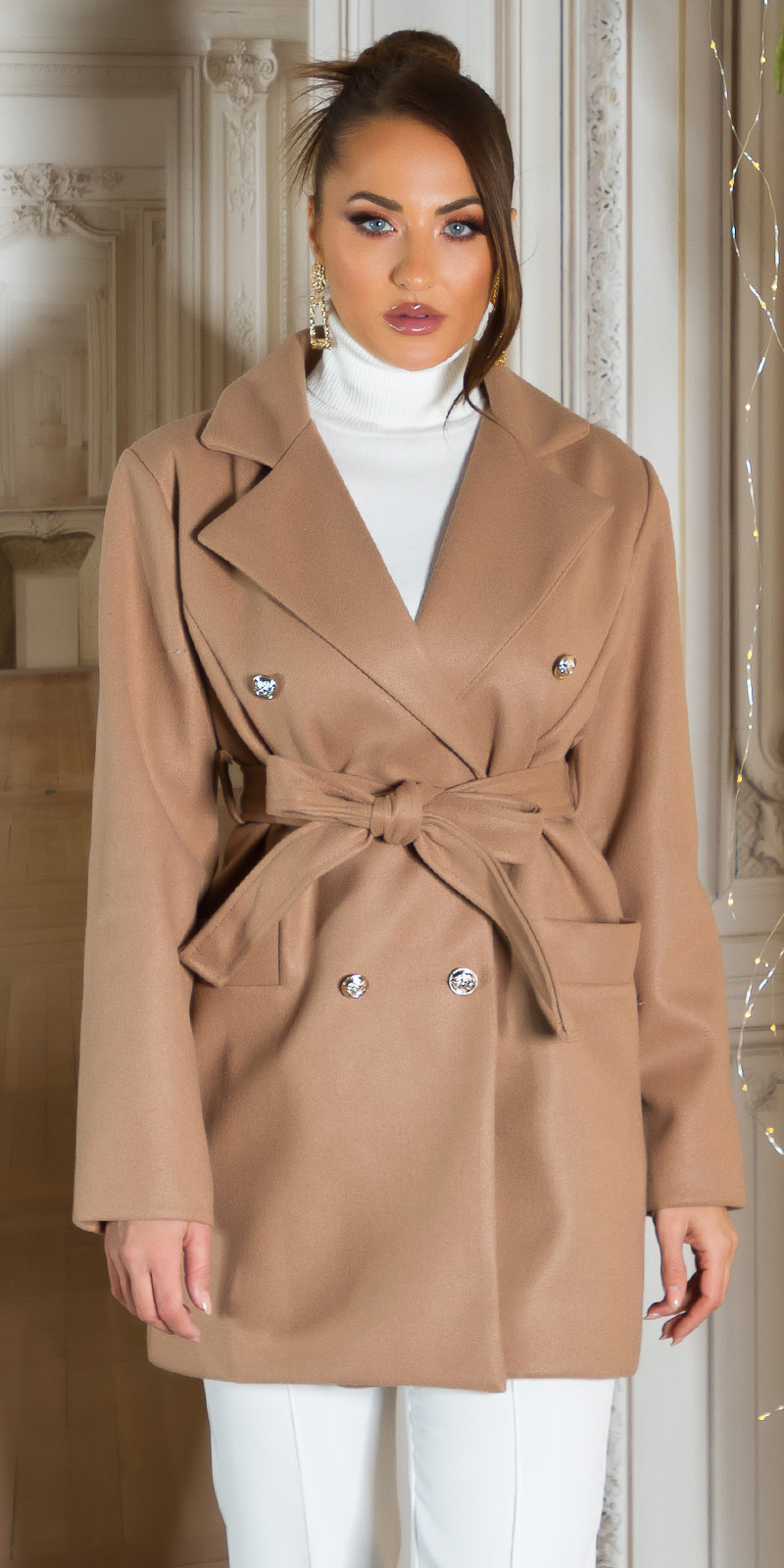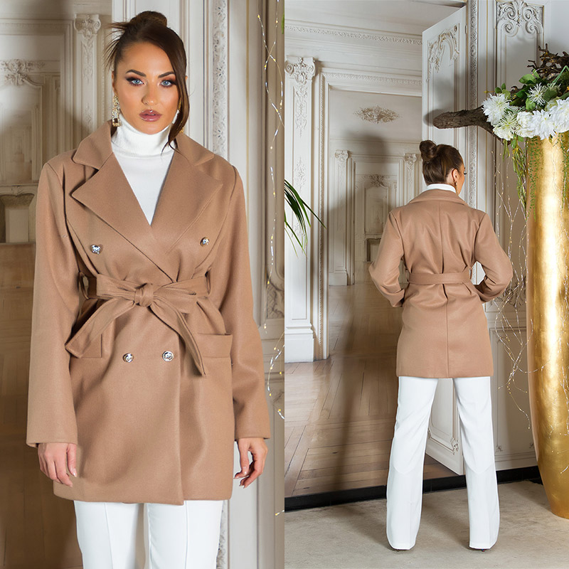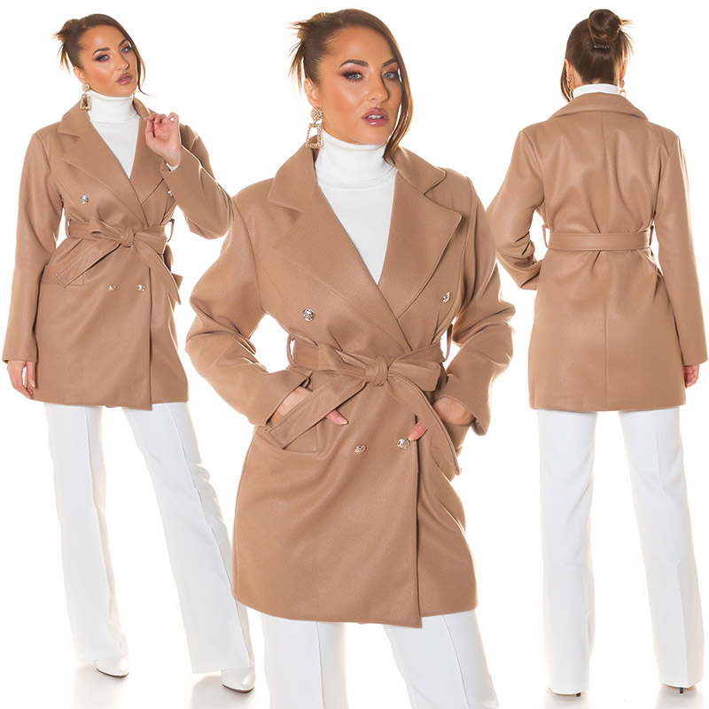 Giaccone corto pilot donna giubbotto effetto montone cintura ecopelle