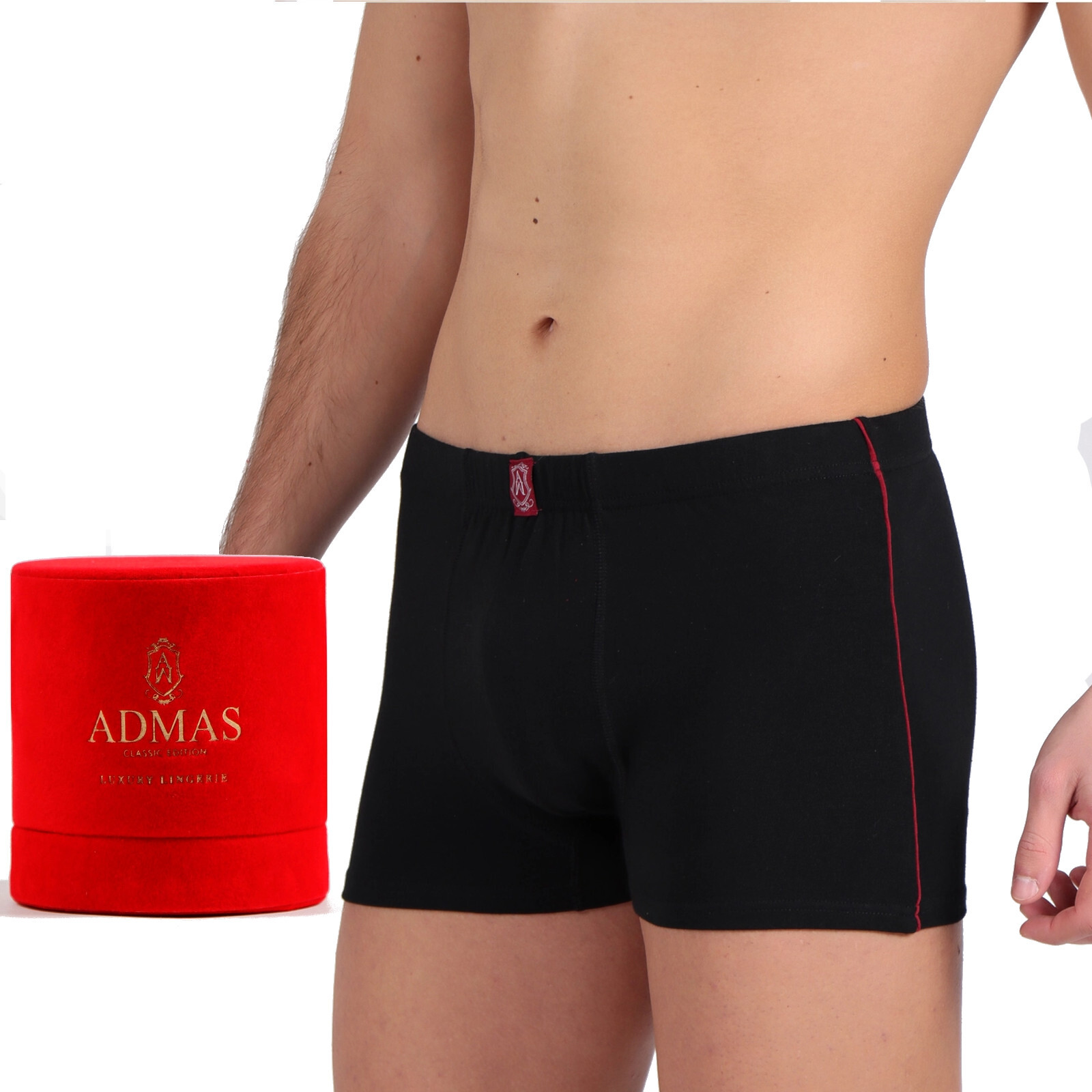 Men’s solid-color boxer briefs in an elegant red velvet box
