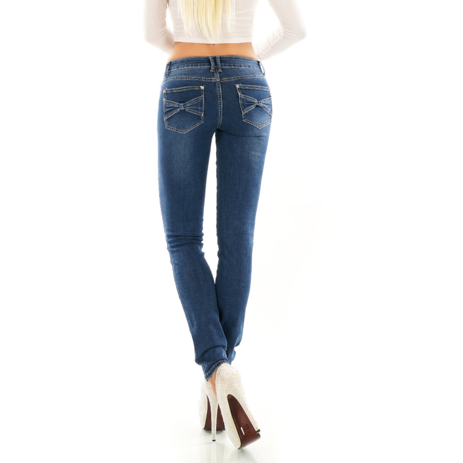 Jeans donna elasticizzato con dettaglio fiocco sulle tasche posteriori