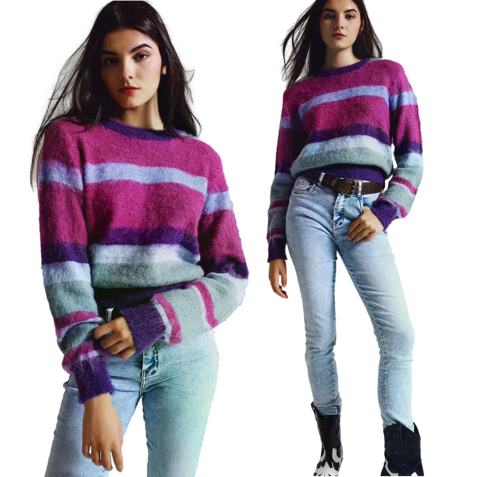 Maglione girocollo a righe donna fluffy morbido manica lunga balloon Maglione girocollo a righe donna fluffy morbido manica lunga balloon Il prezzo originale era: 42,90 €.Il prezzo attuale è: 21,45 €.