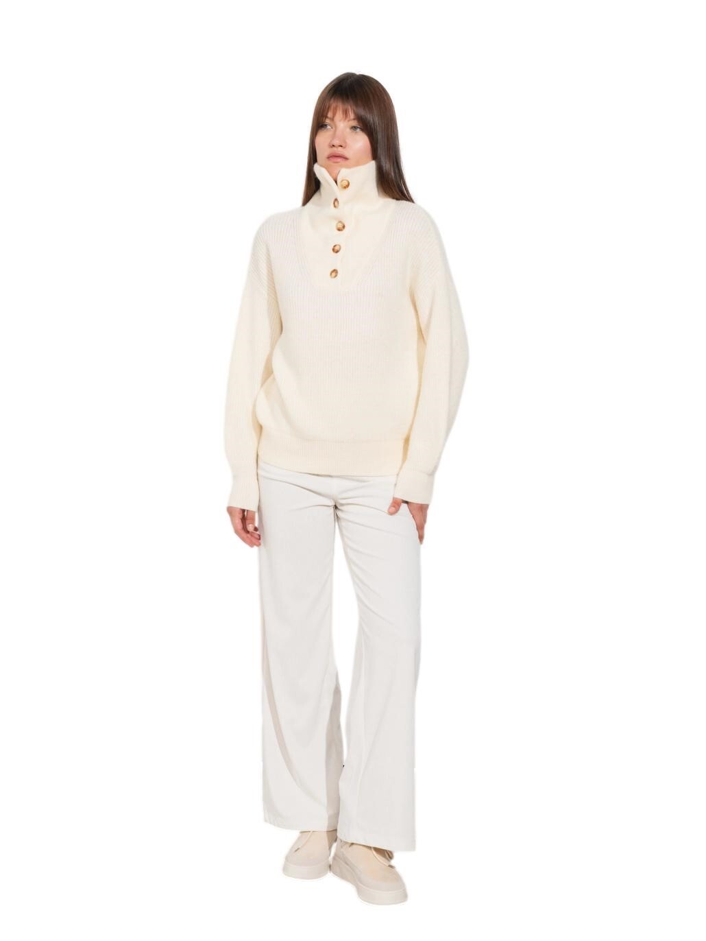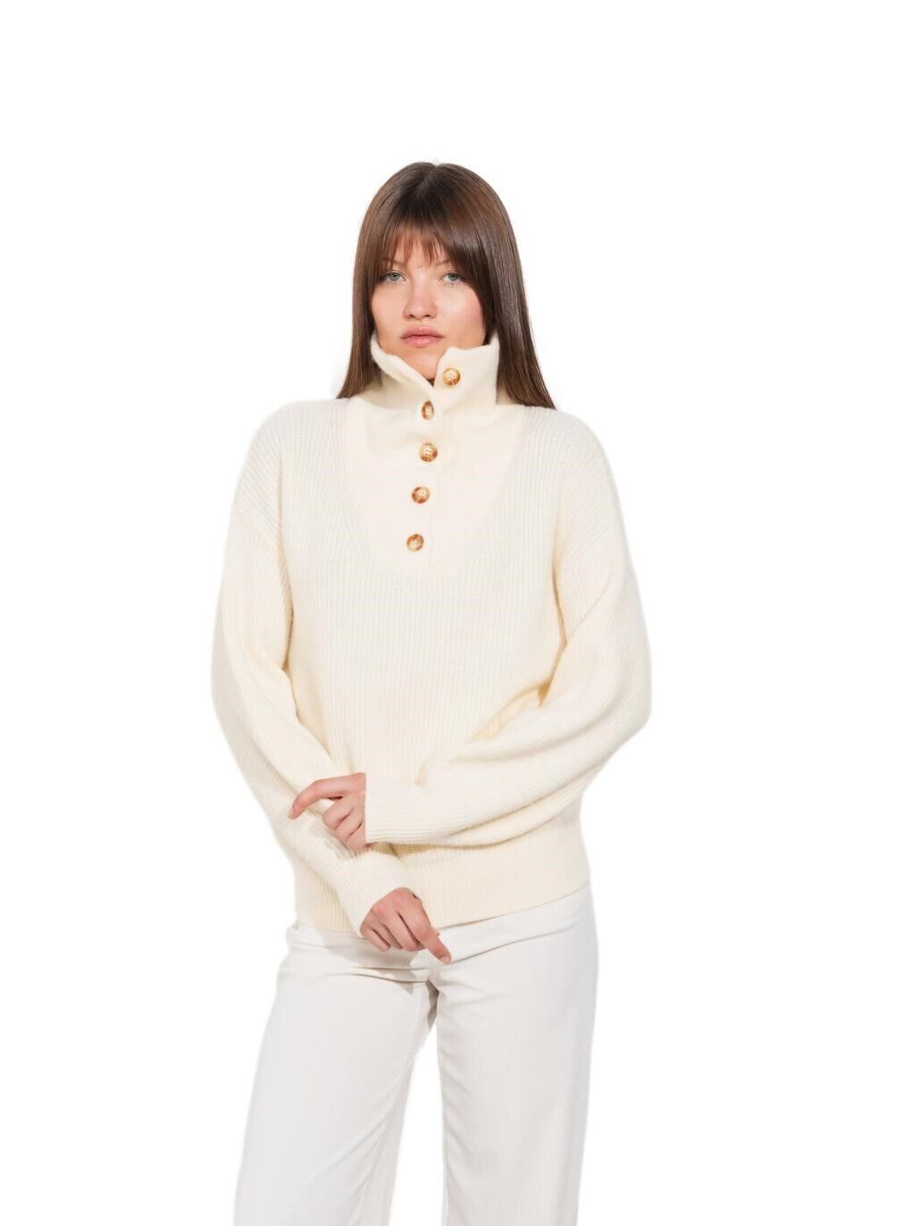 Maglione donna con collo alto apribile