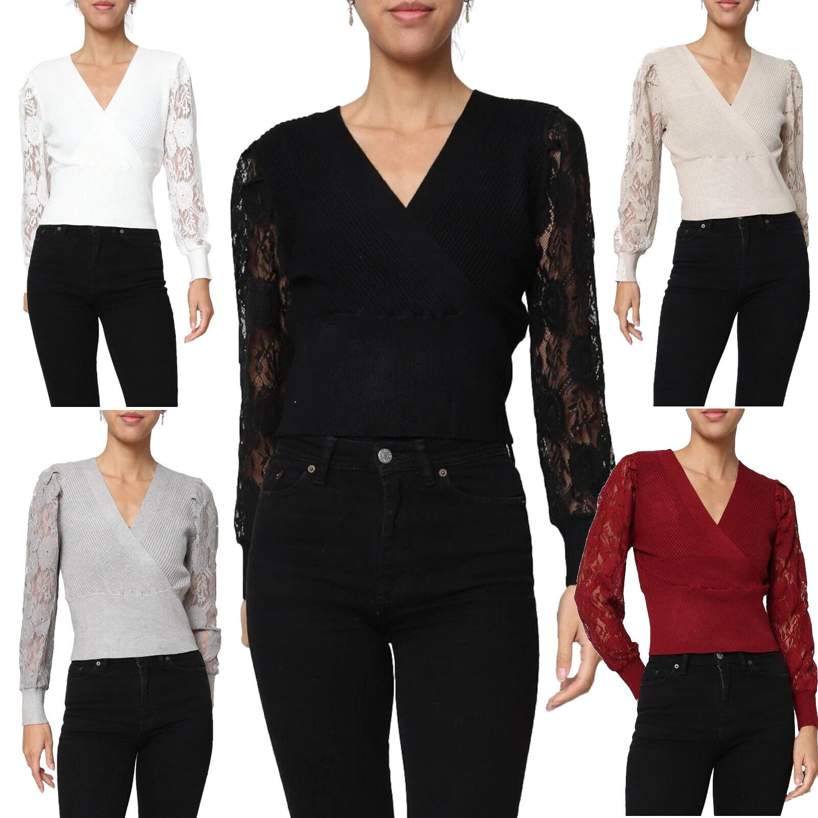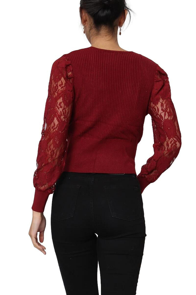 Maglione donna con maniche lunghe in pizzo
