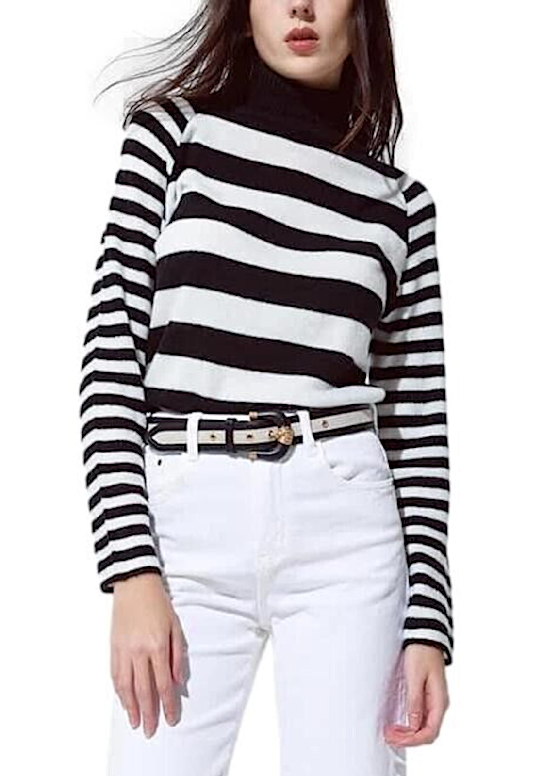Women’s turtleneck sweater with asymmetrical stripes