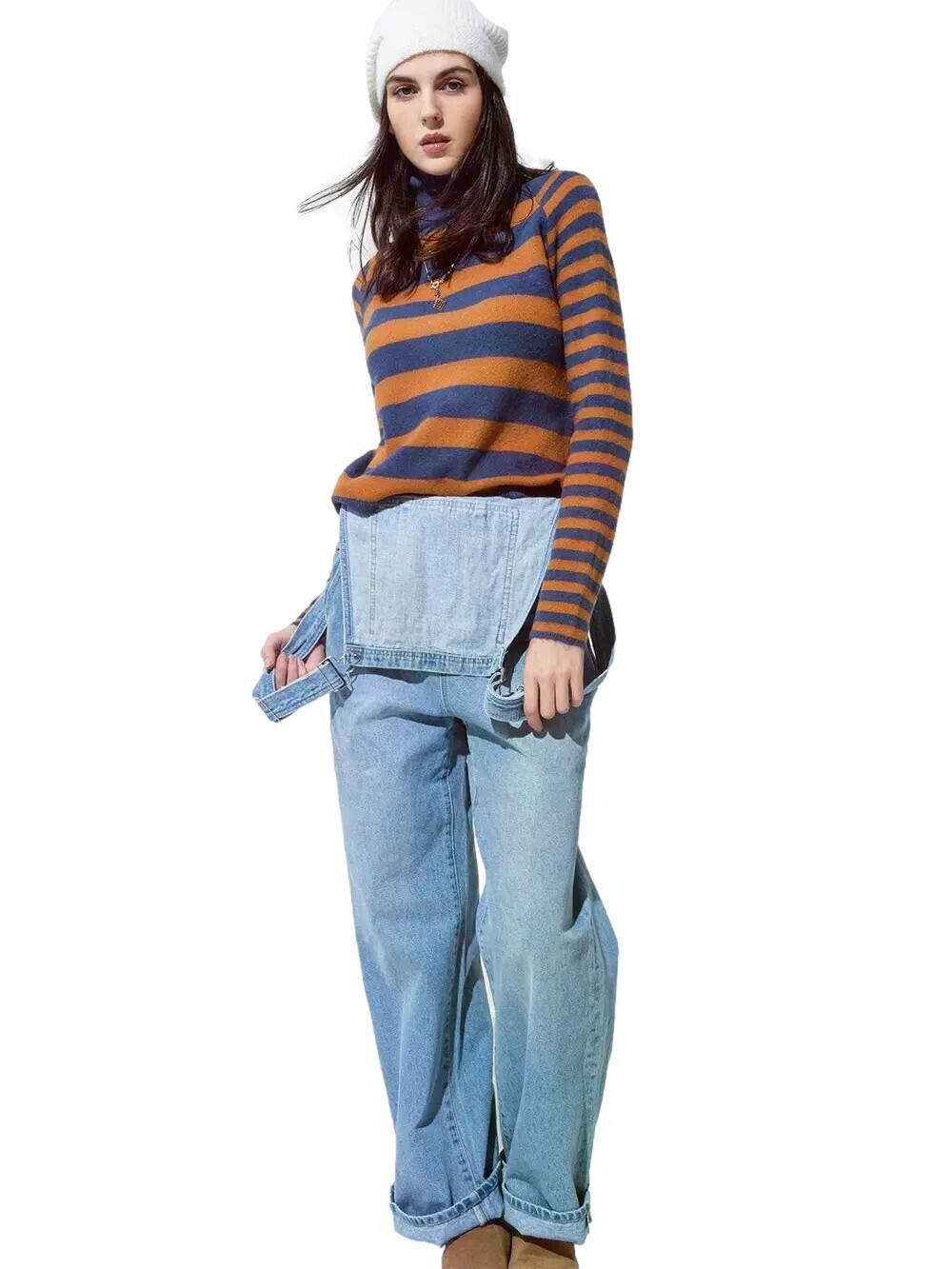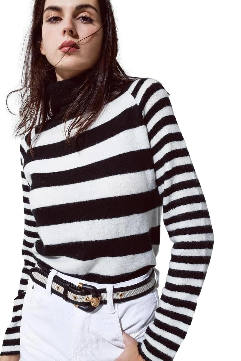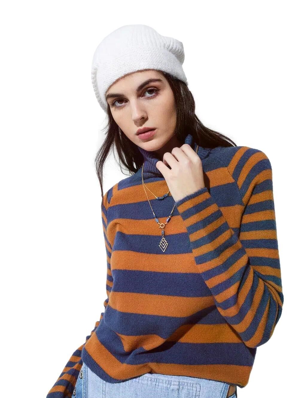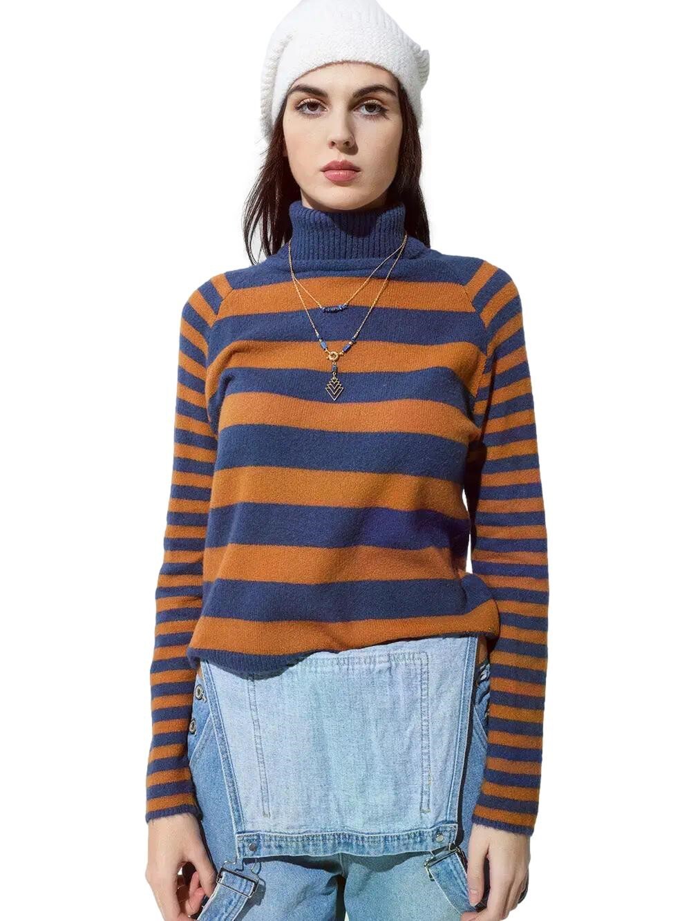Maglione lupetto donna collo alto dolcevita righe sweater