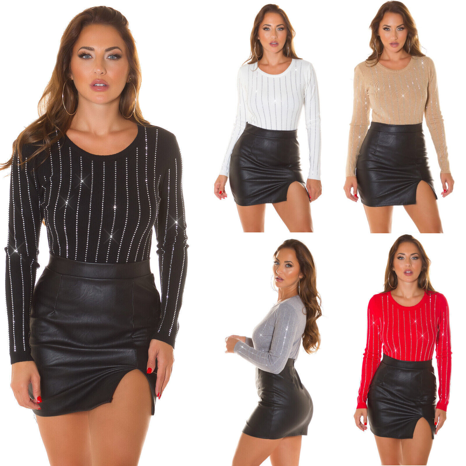 Maglione donna con righe di strass verticali