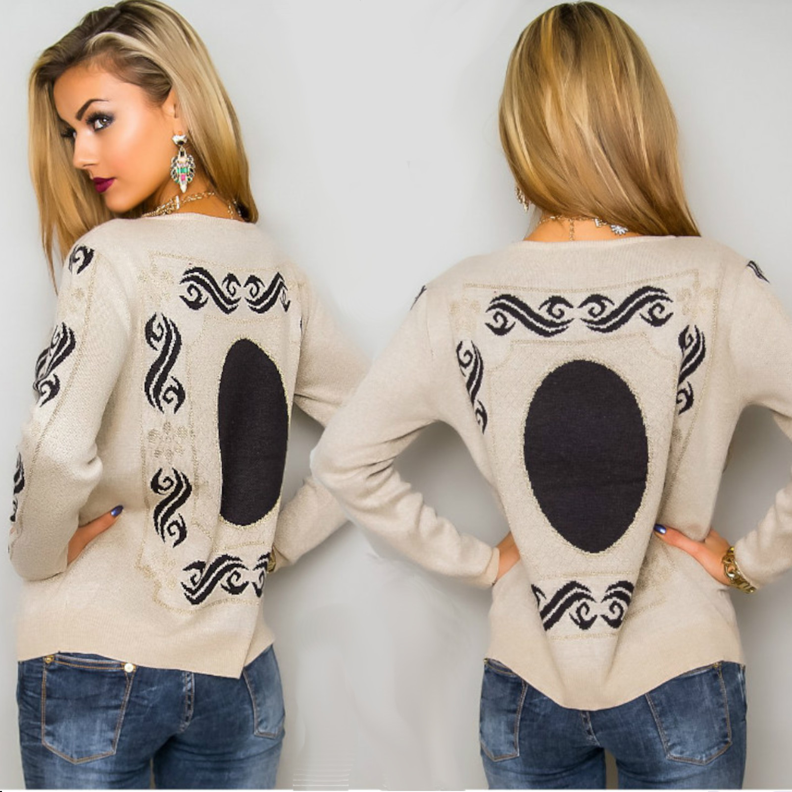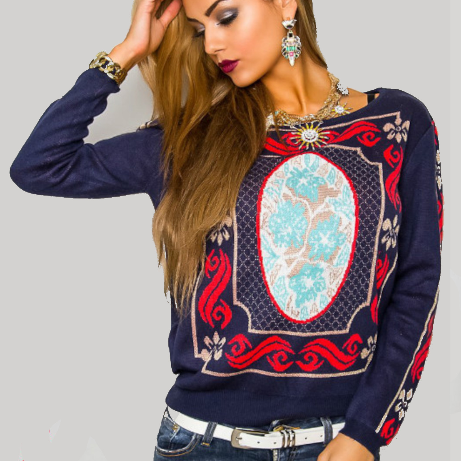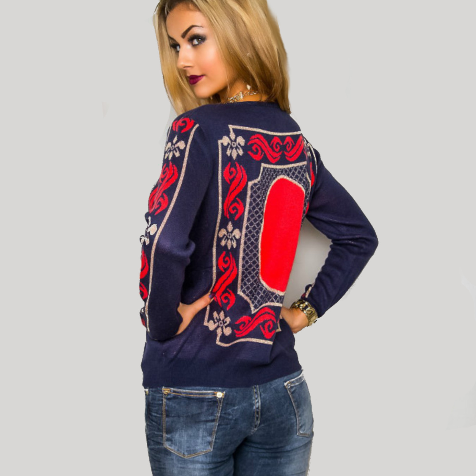 Maglione decorato in fantasia nordica colorata più dettagli in lurex