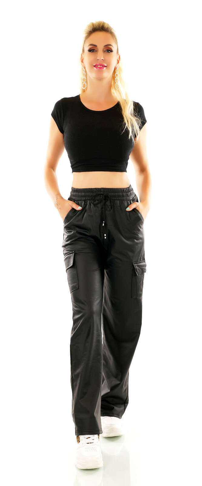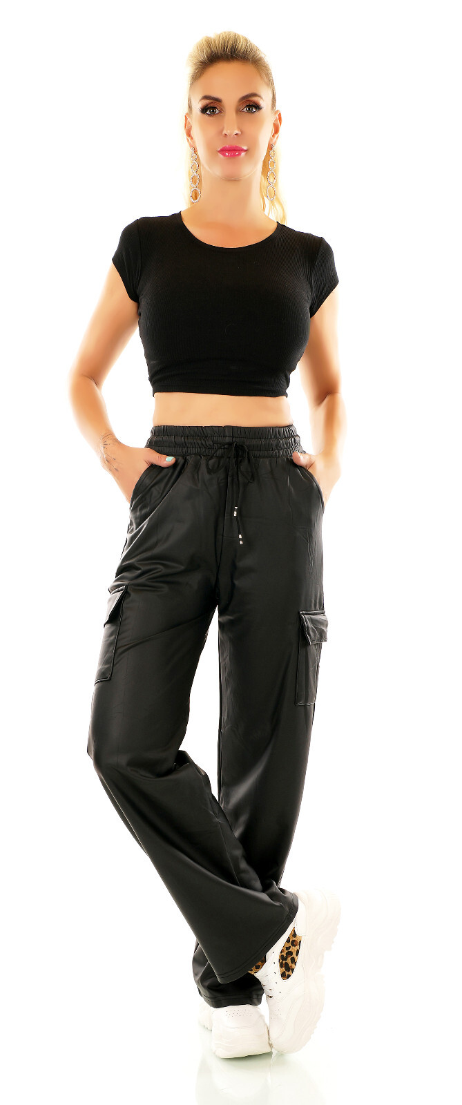 Pantalone cargo donna in ecopelle