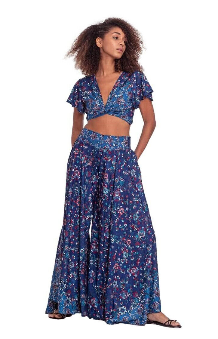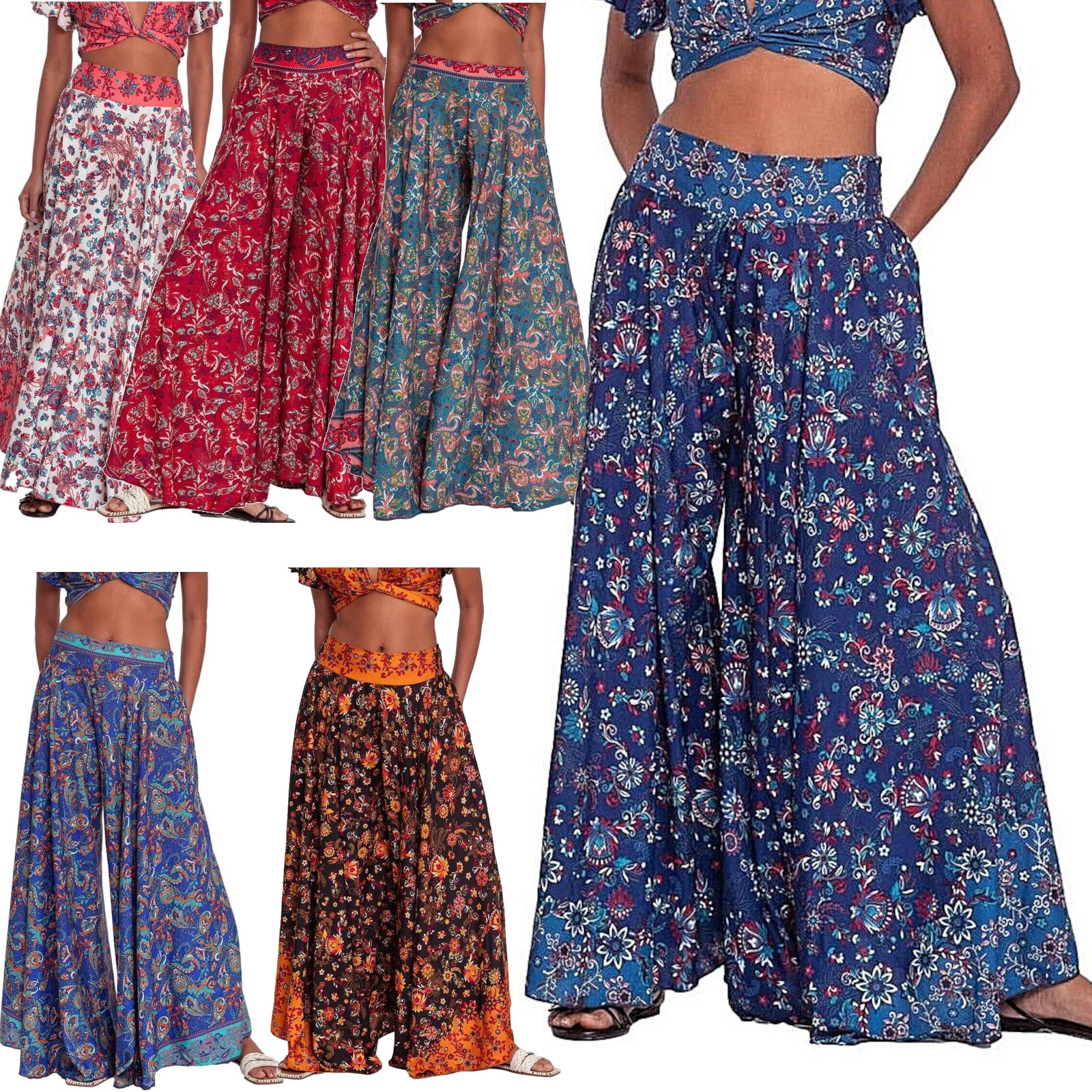 Pantalone gamba larga gonna pantalone palazzo vita elastica effetto seta
