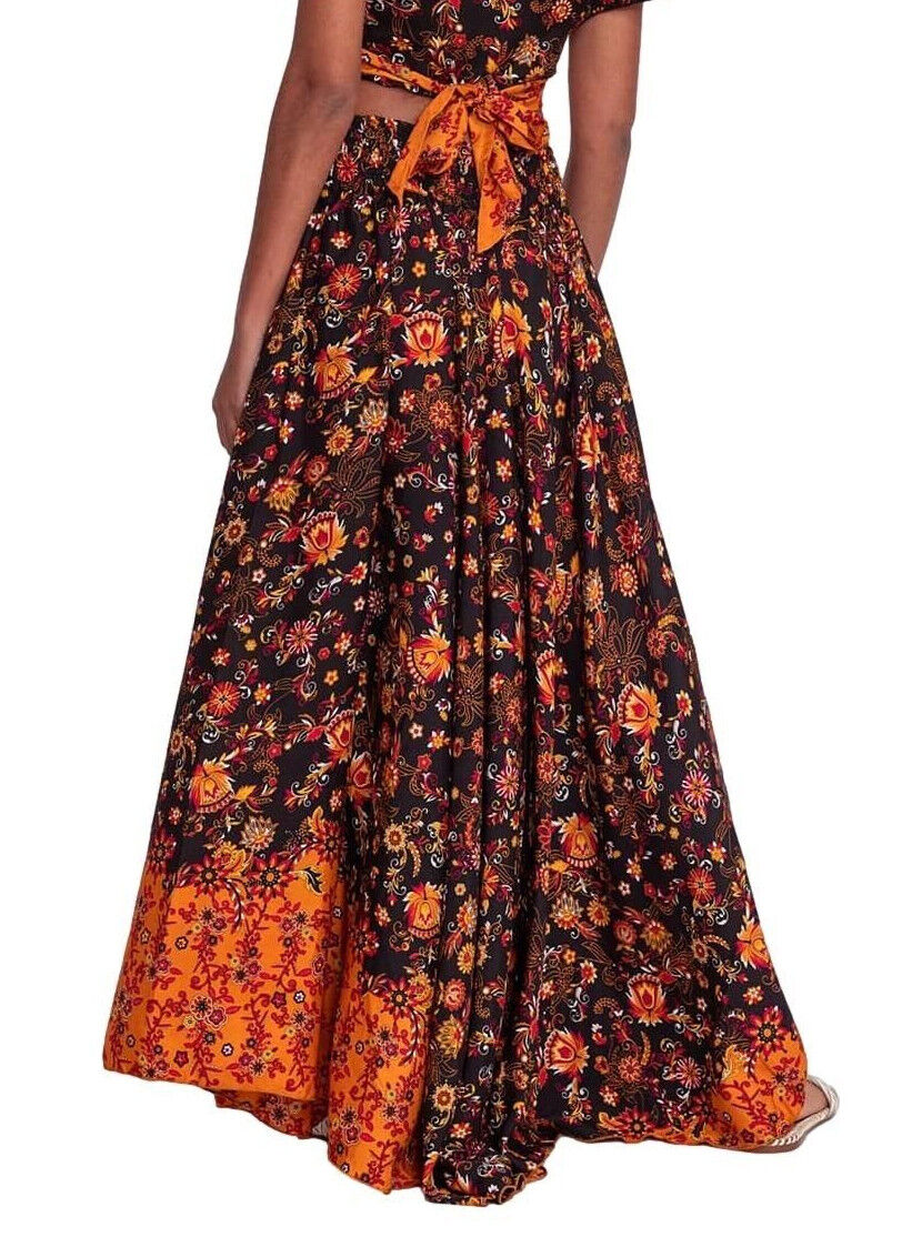 Floral or damask print with the following background colors: black, dark blue, red, white, blue, turquoise