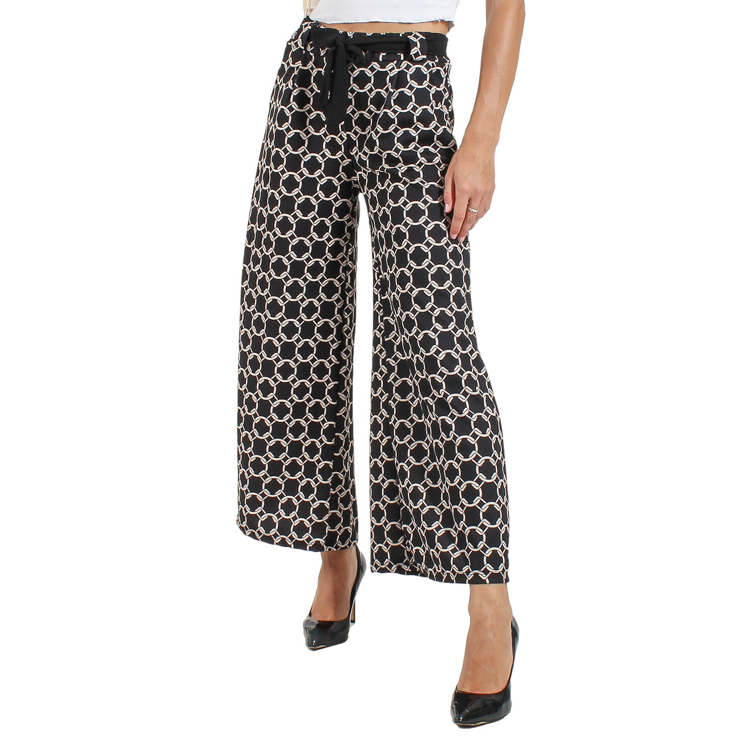 Pantalone cropped con cinturino nero in tessuto