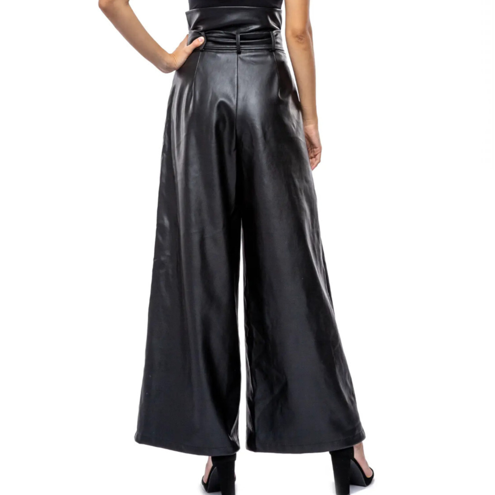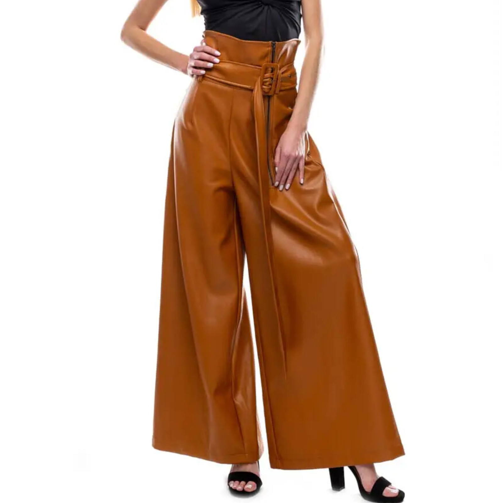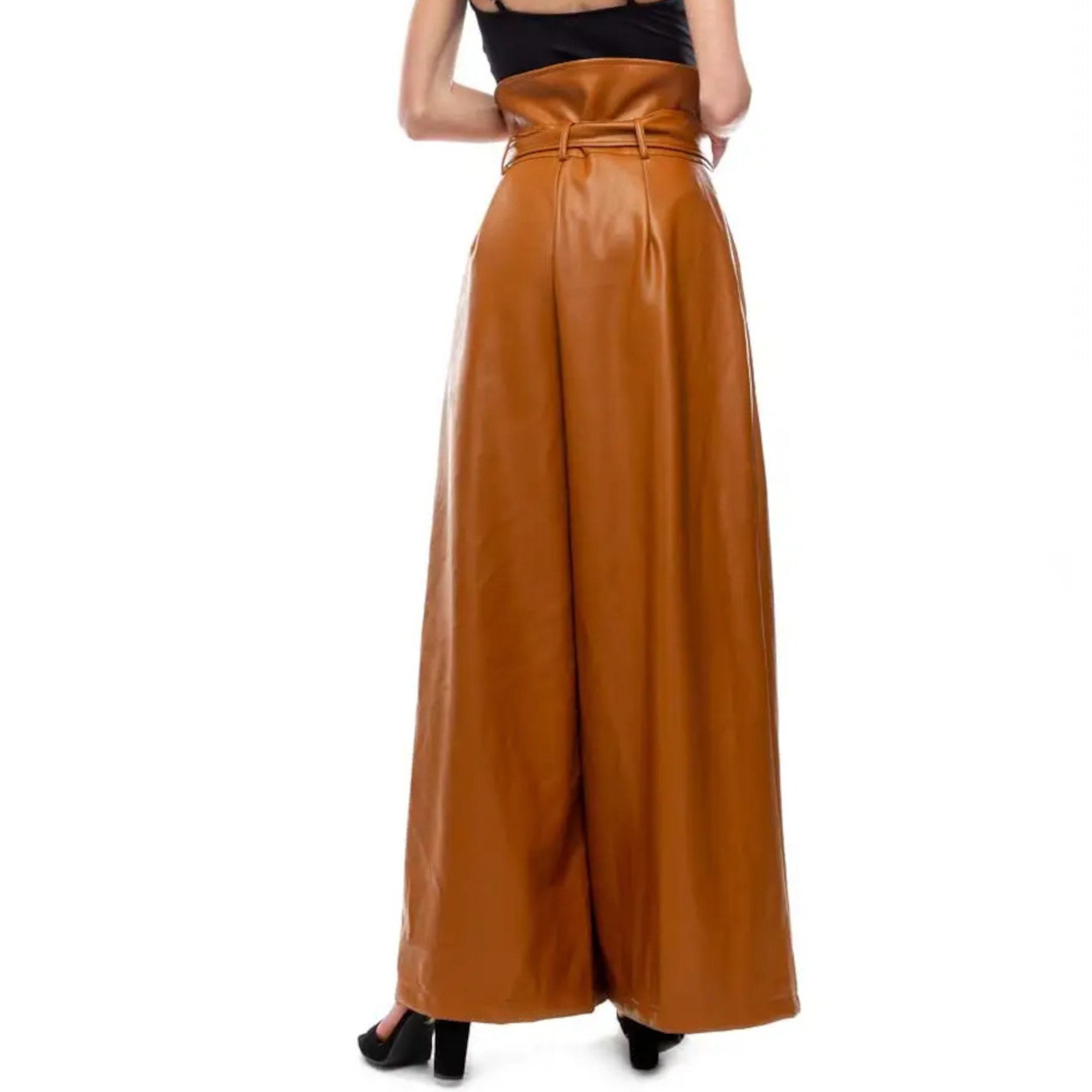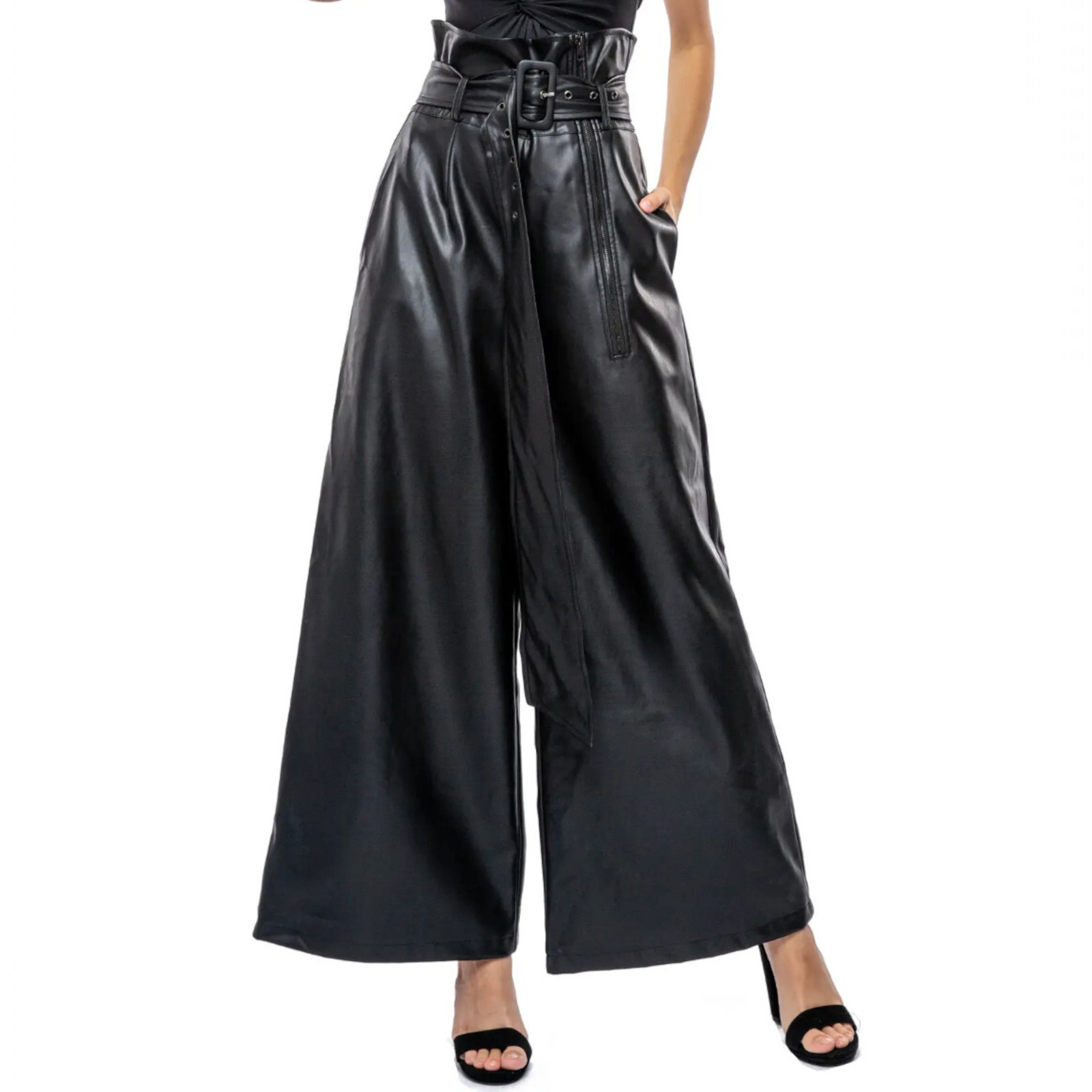 Pantalone palazzo in ecopelle a vita alta con cintura