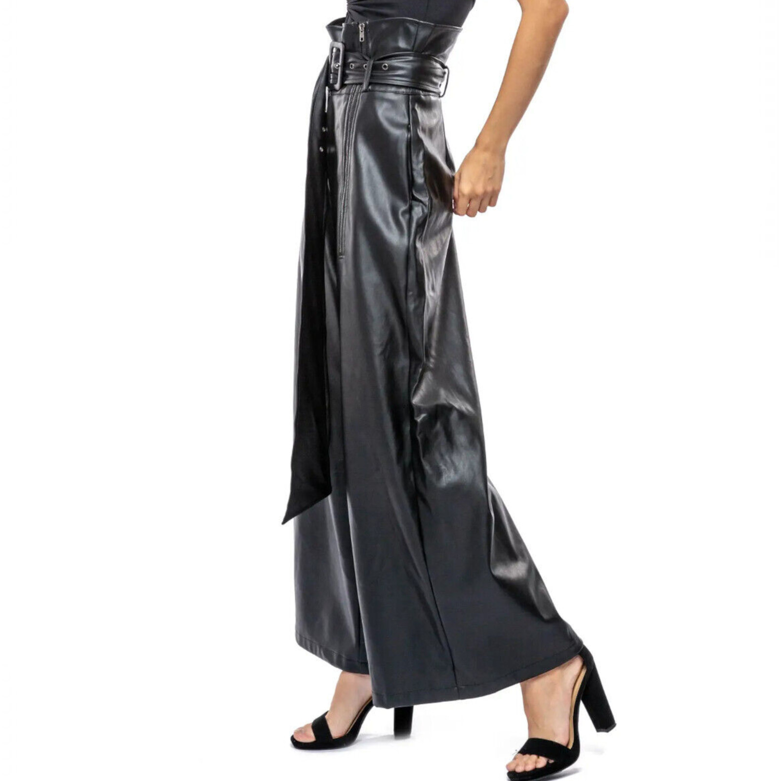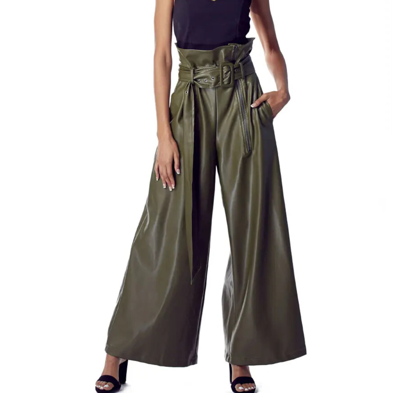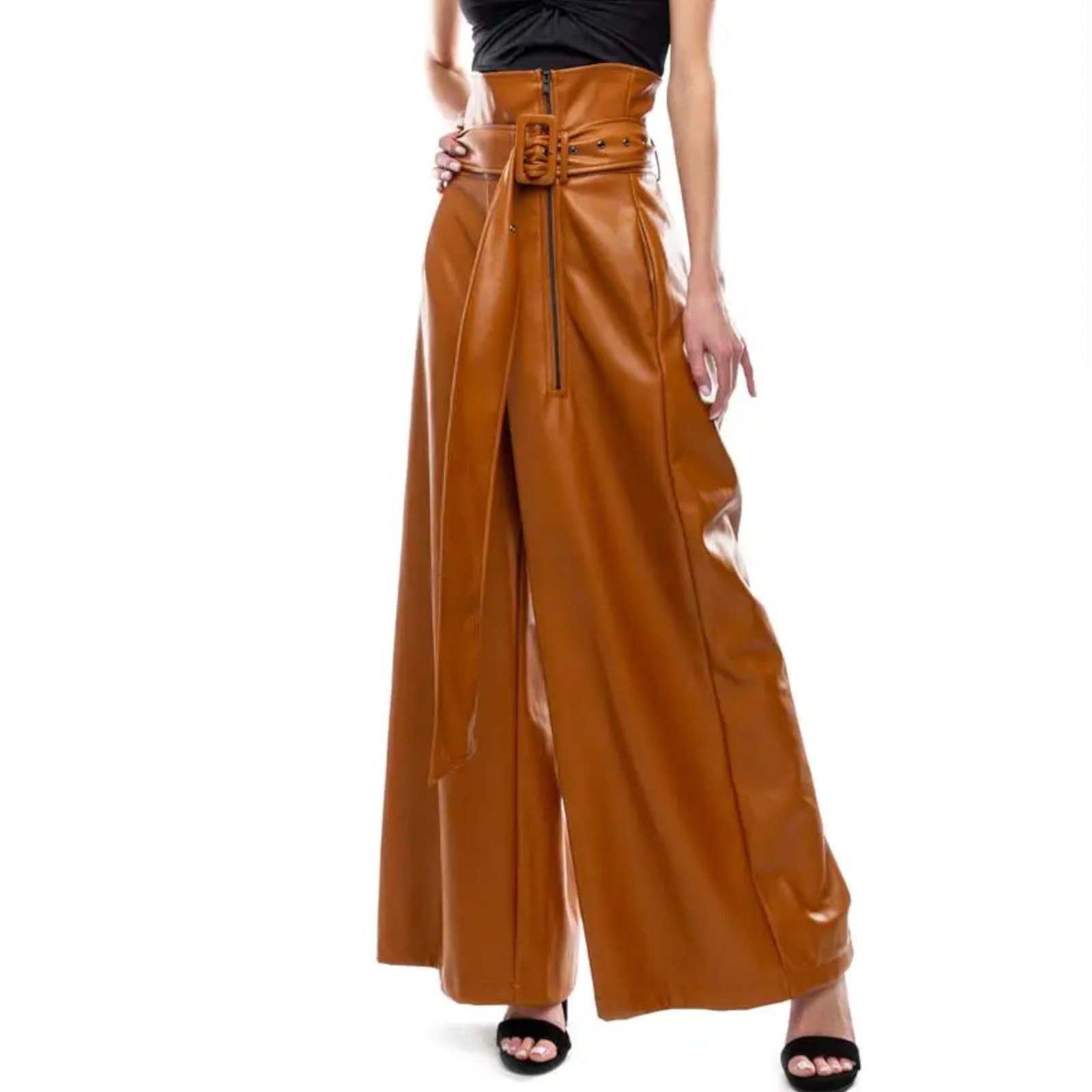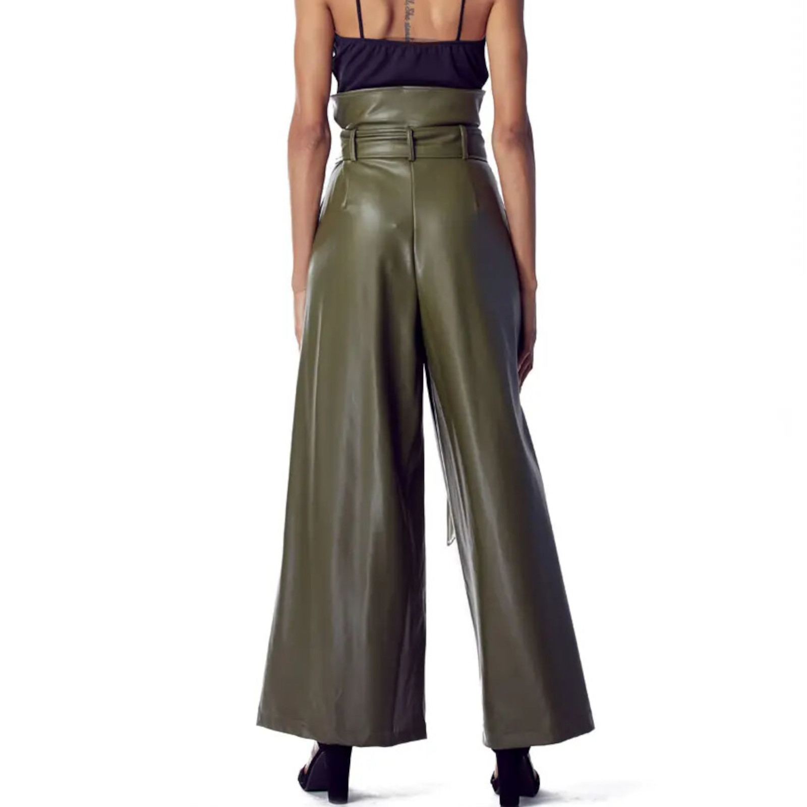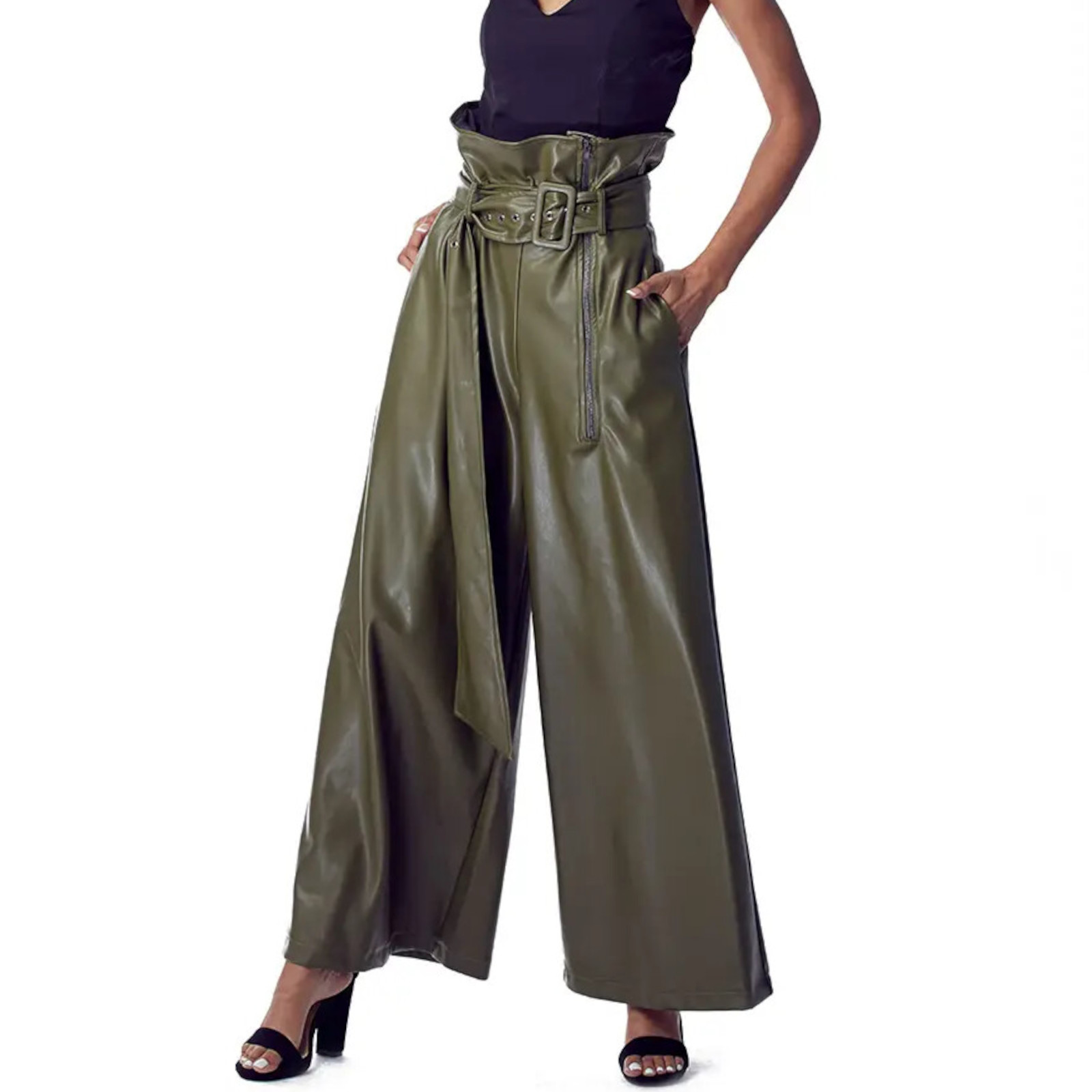 Pantalone palazzo in ecopelle a vita alta con cintura