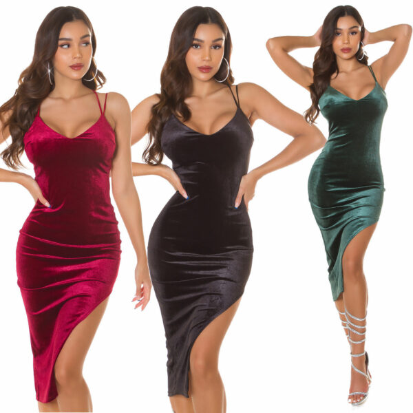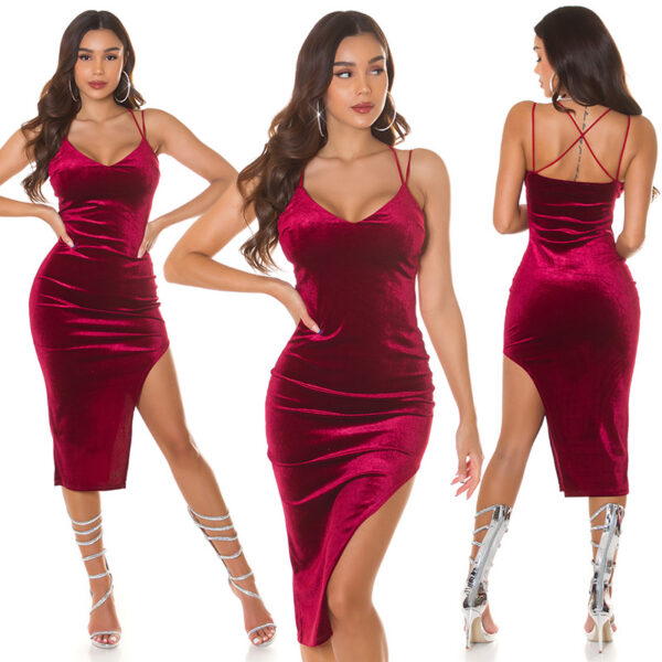 Sexy abito lungo in maglia con spacco e zip centrale decorata da strass
