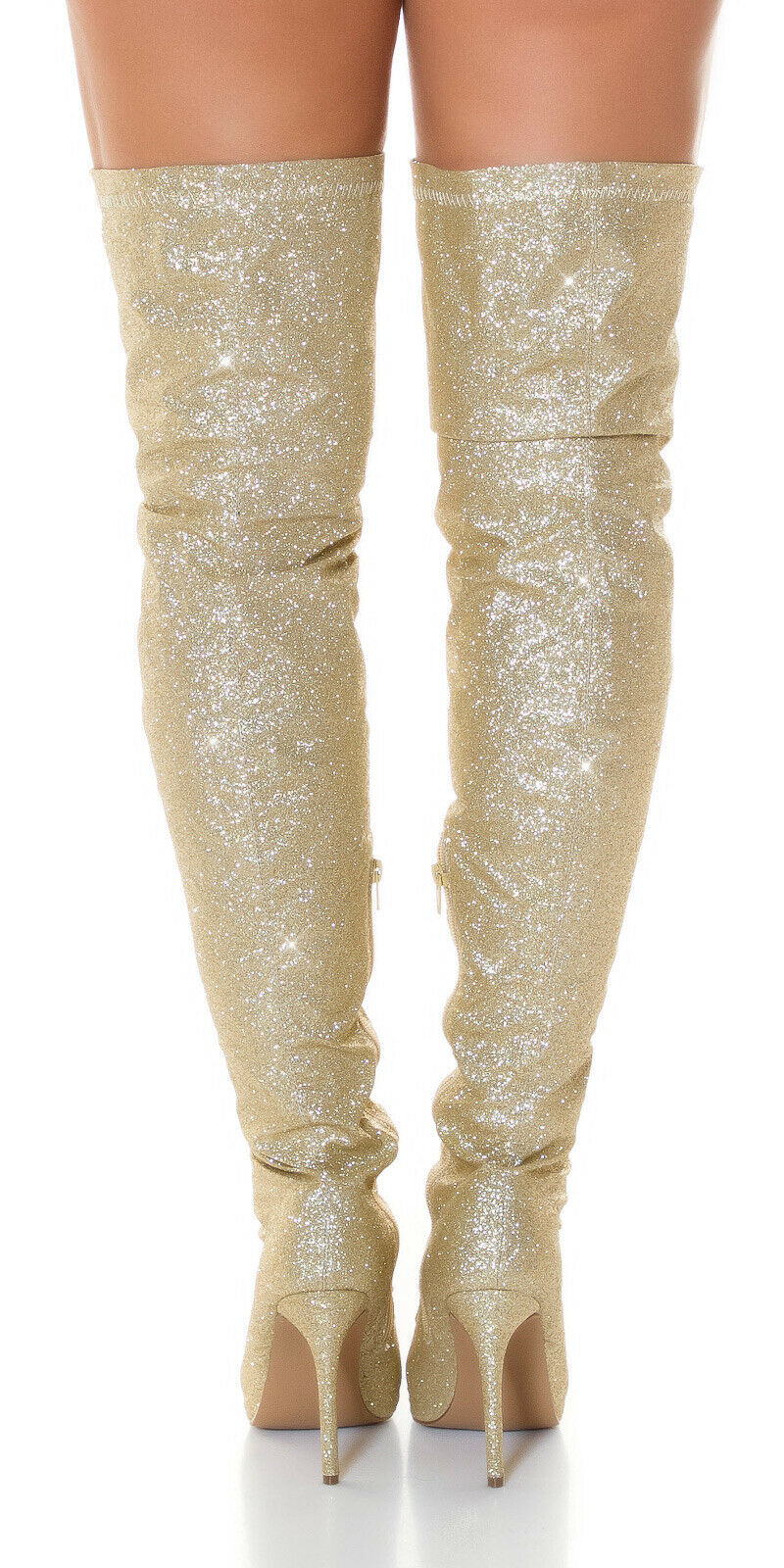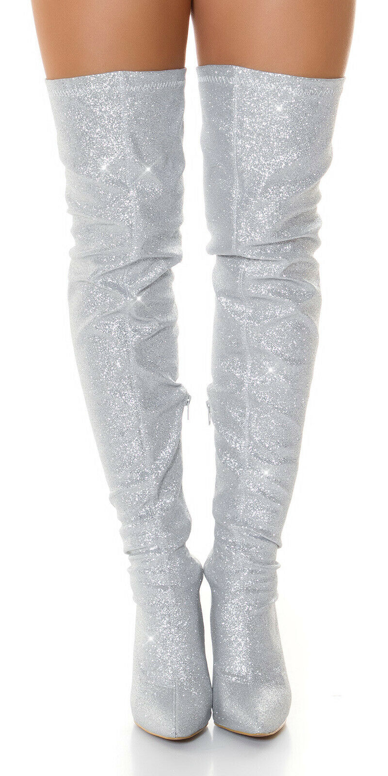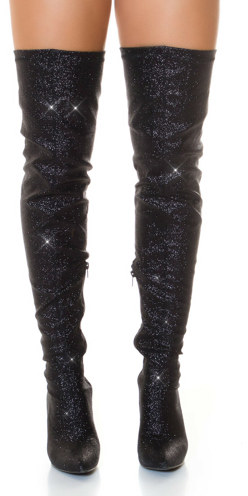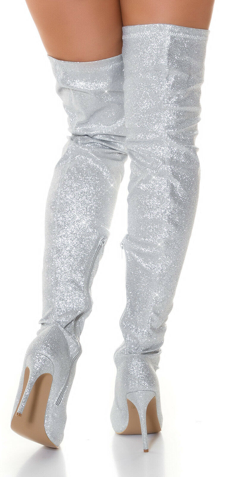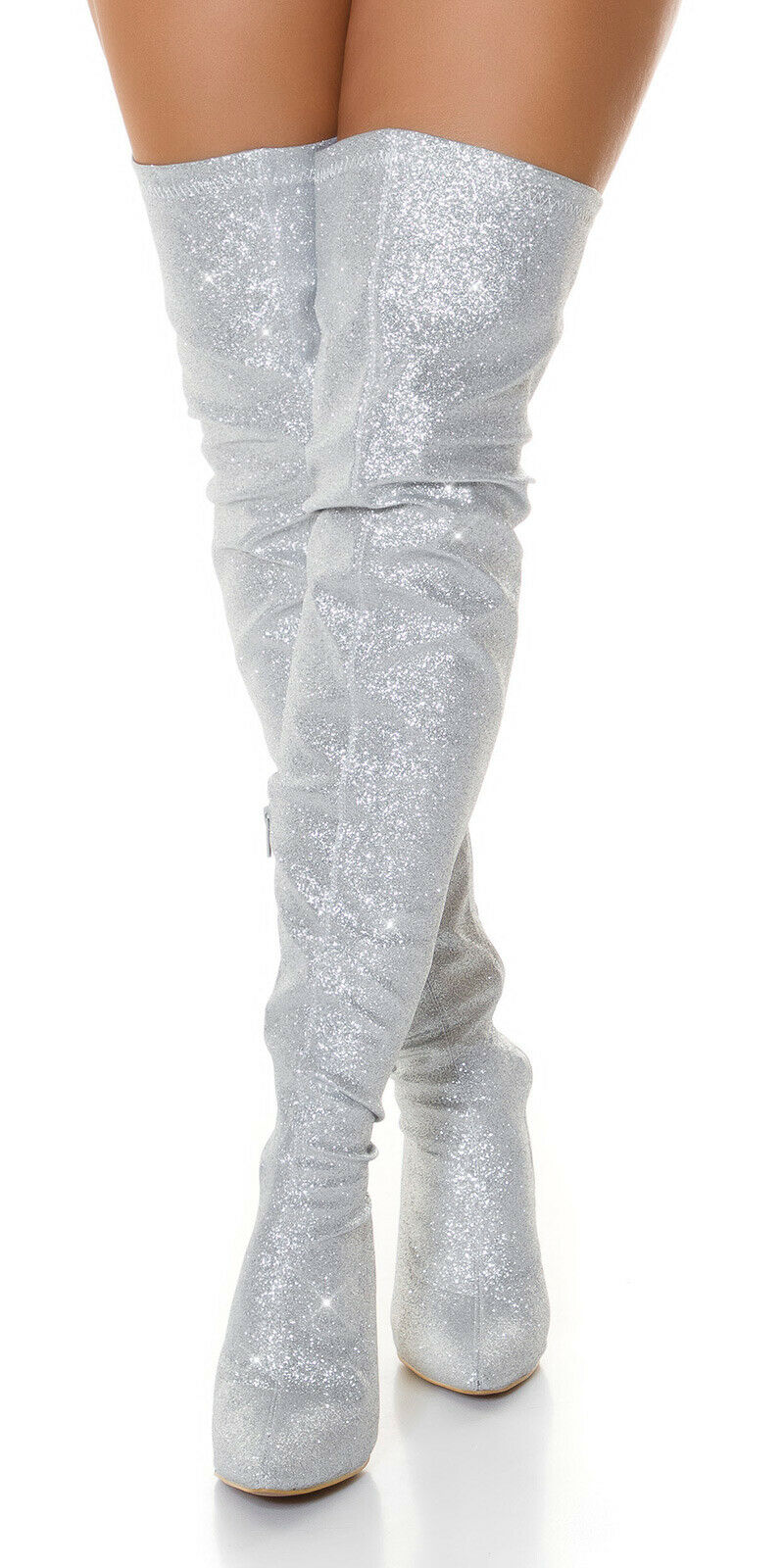 Stivali donna glitterati cuissard tacco a spillo party sera festa
