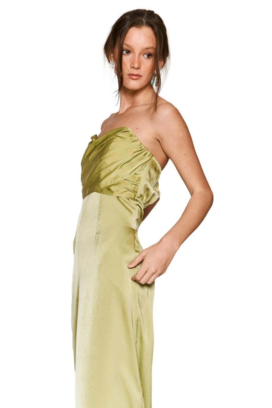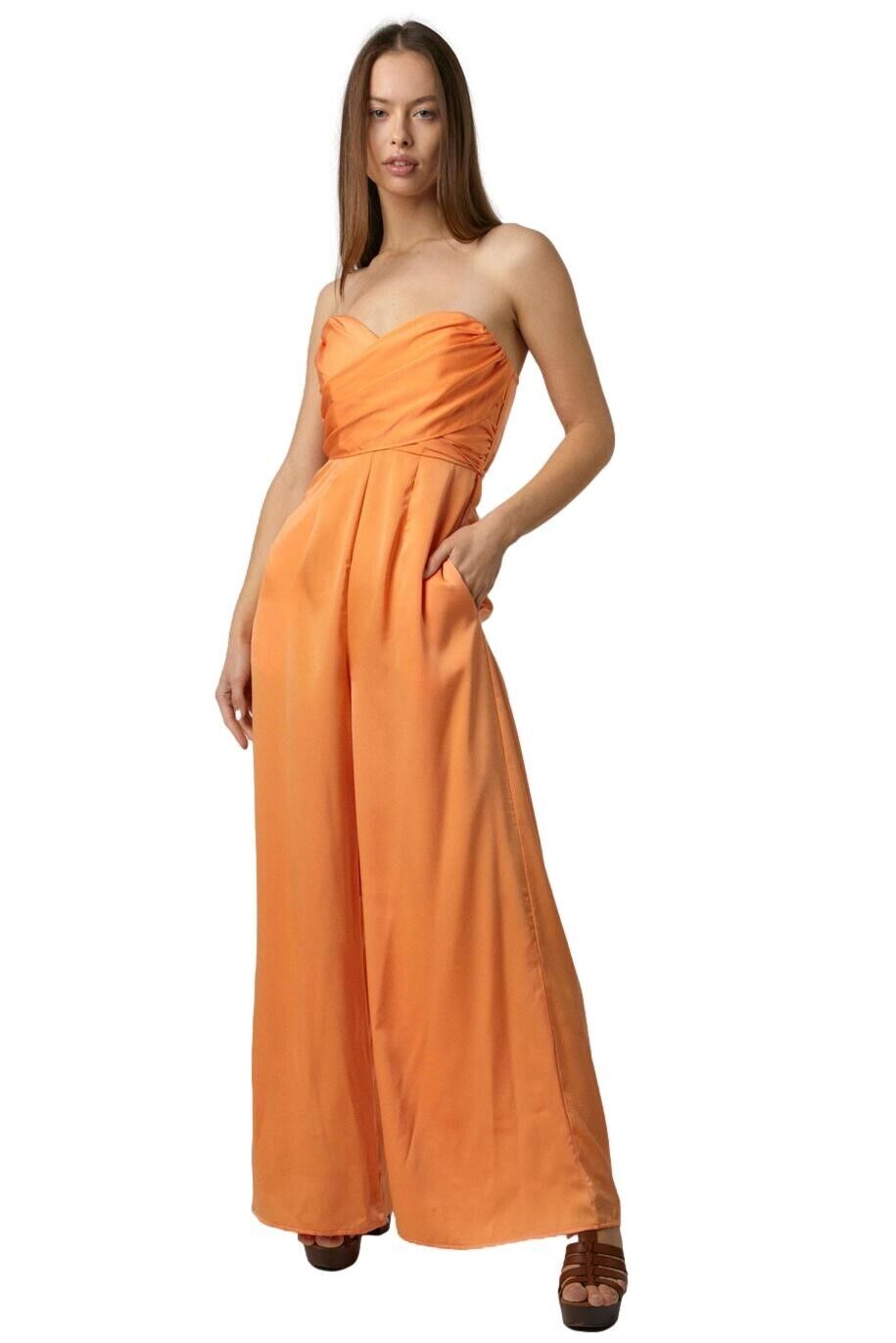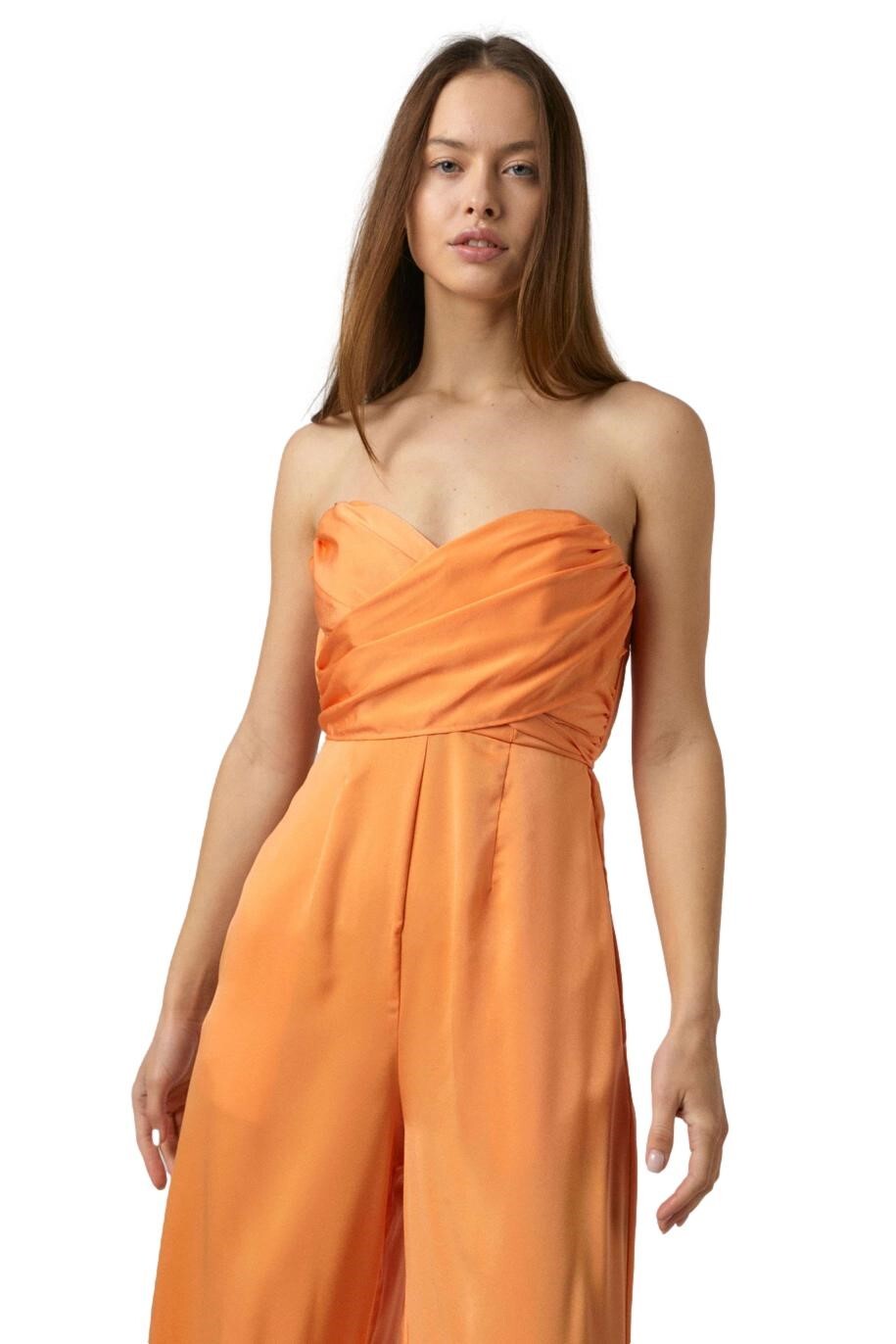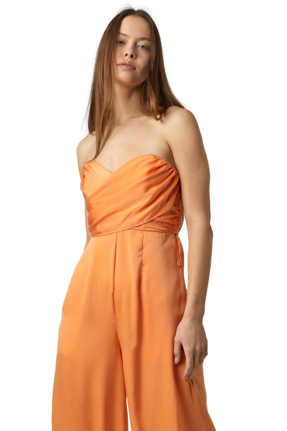 Elegante tuta con scollo a cuore sagomato e pieghe incrociate