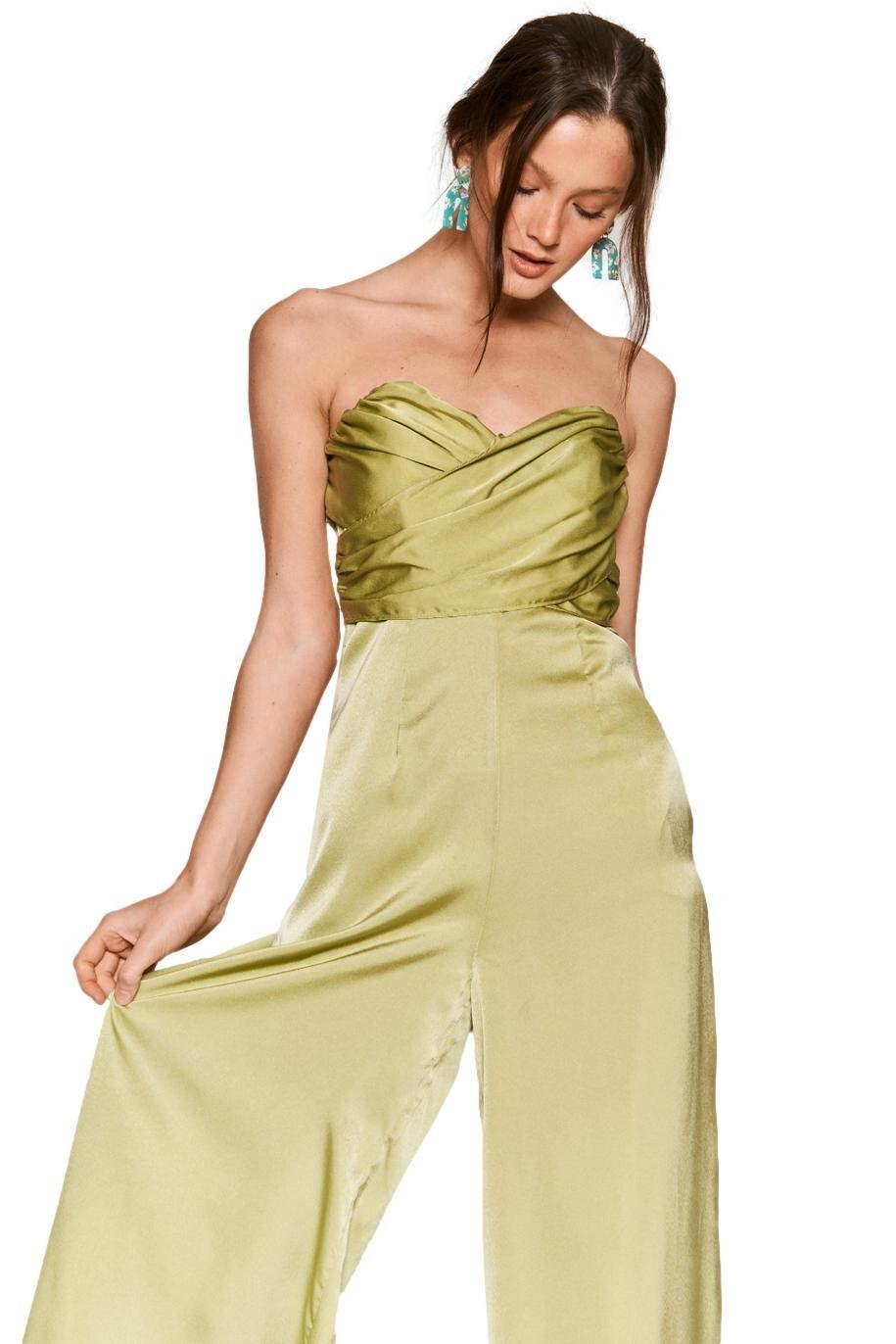 Elegant jumpsuit with a shaped sweetheart neckline and crisscross pleats