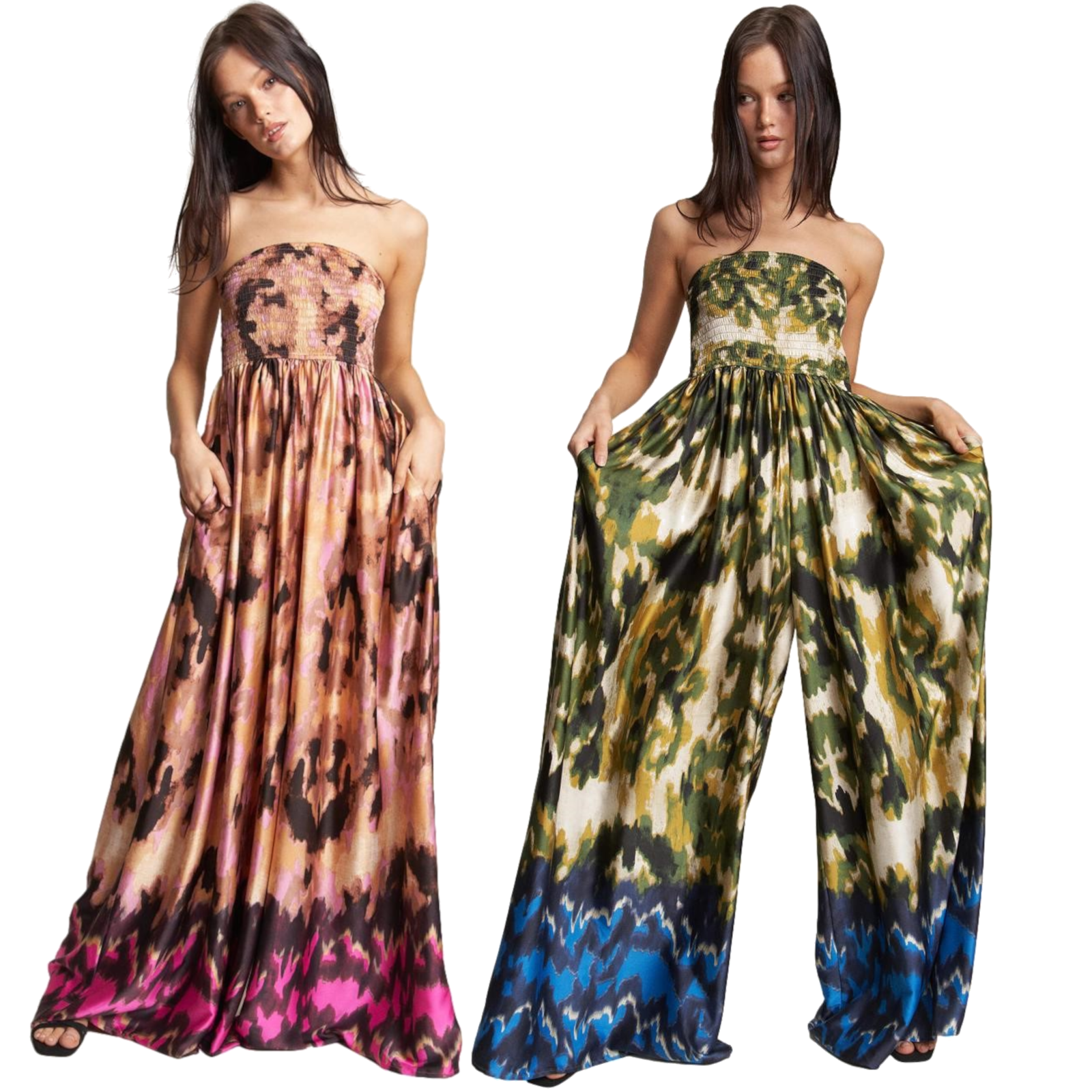 Colors: Multicolored brown/fuchsia; multicolored green/blue