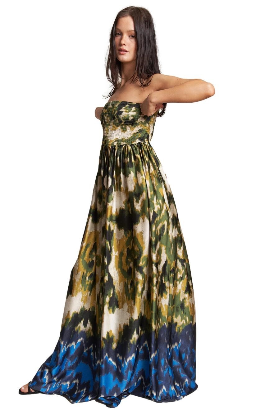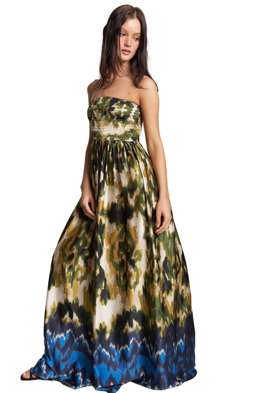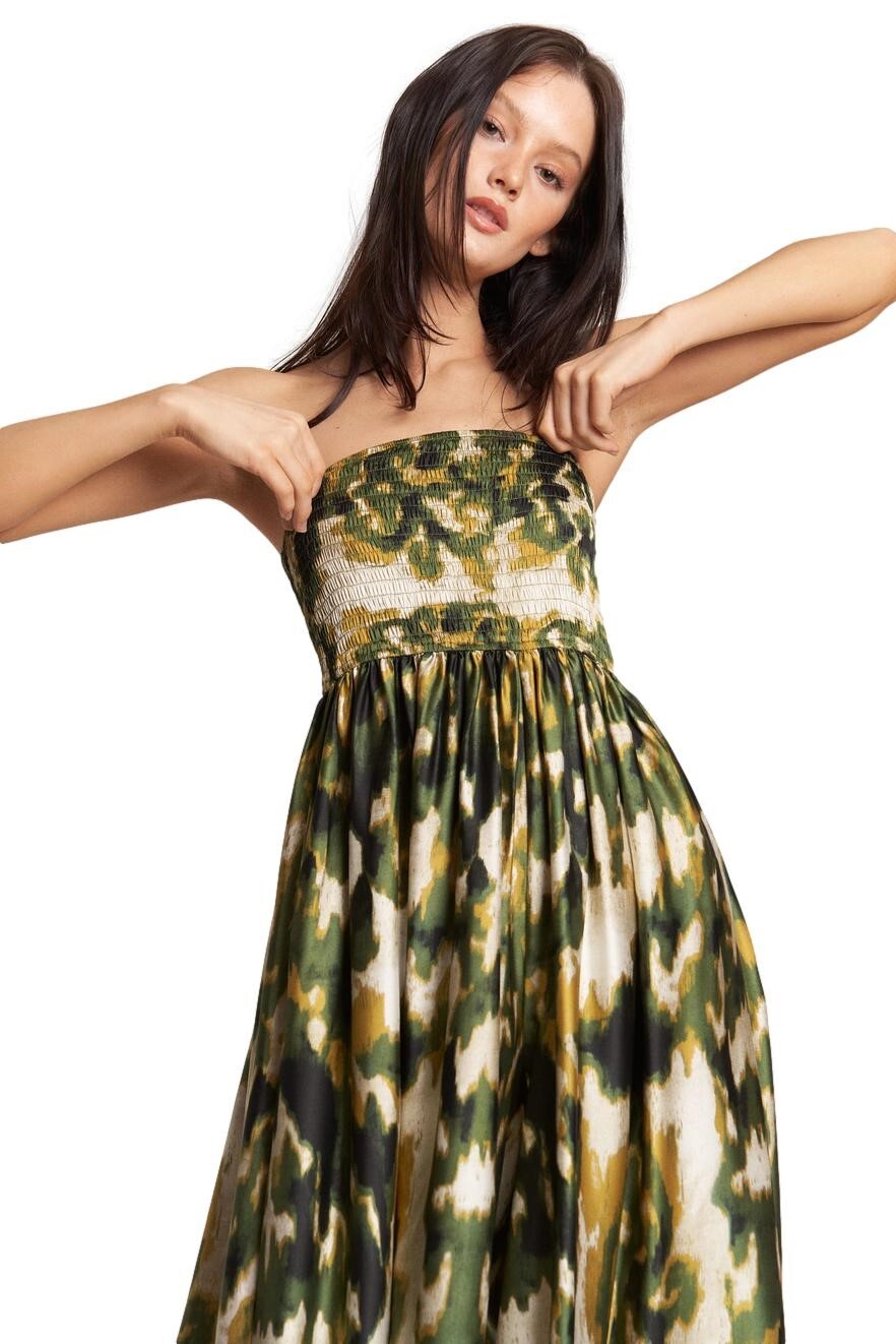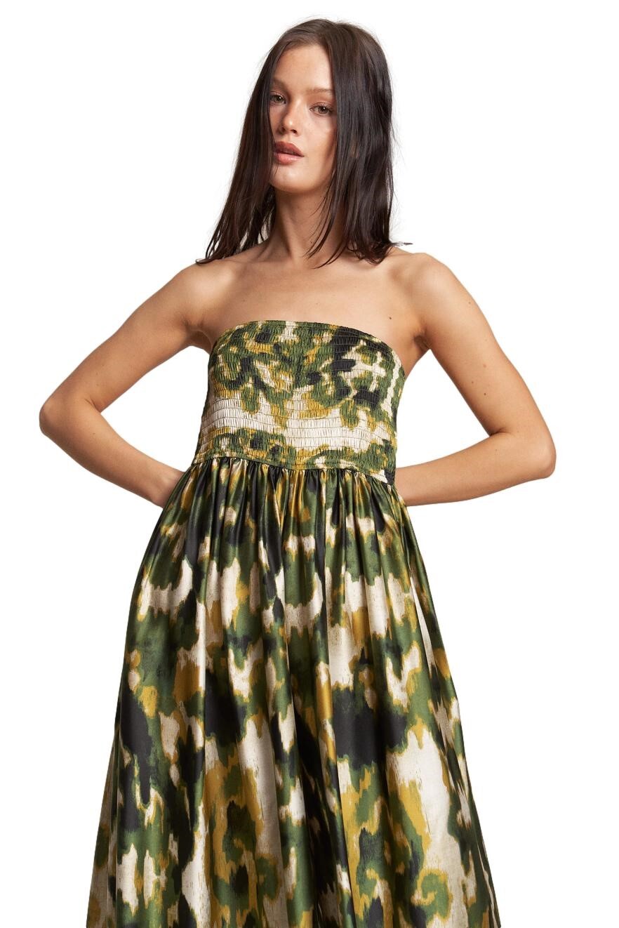 Elasticized bust with bandeau neckline