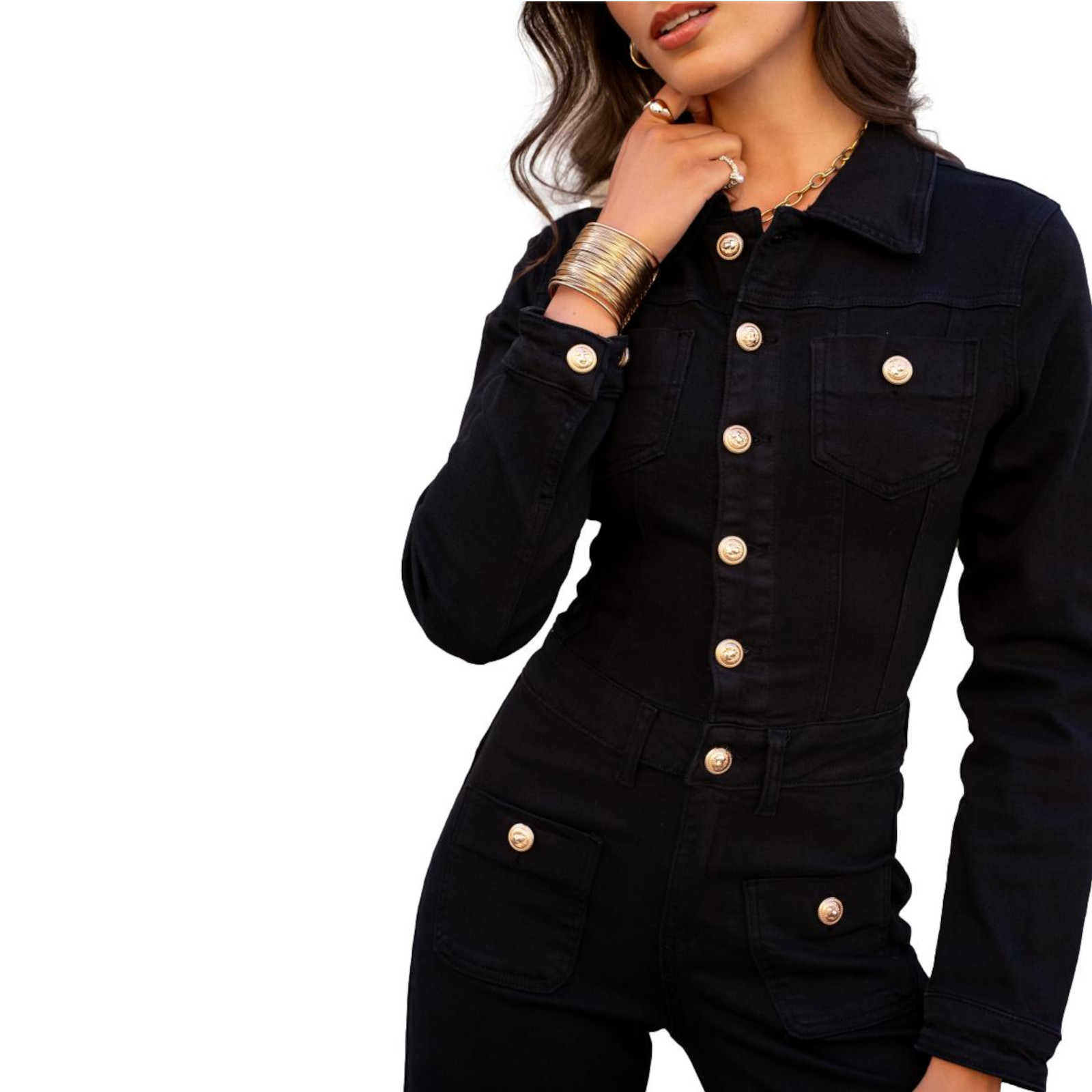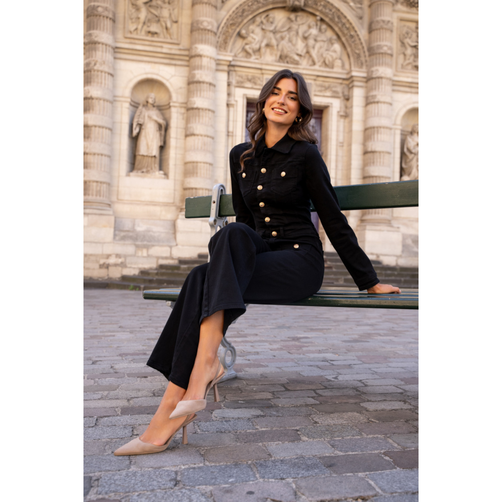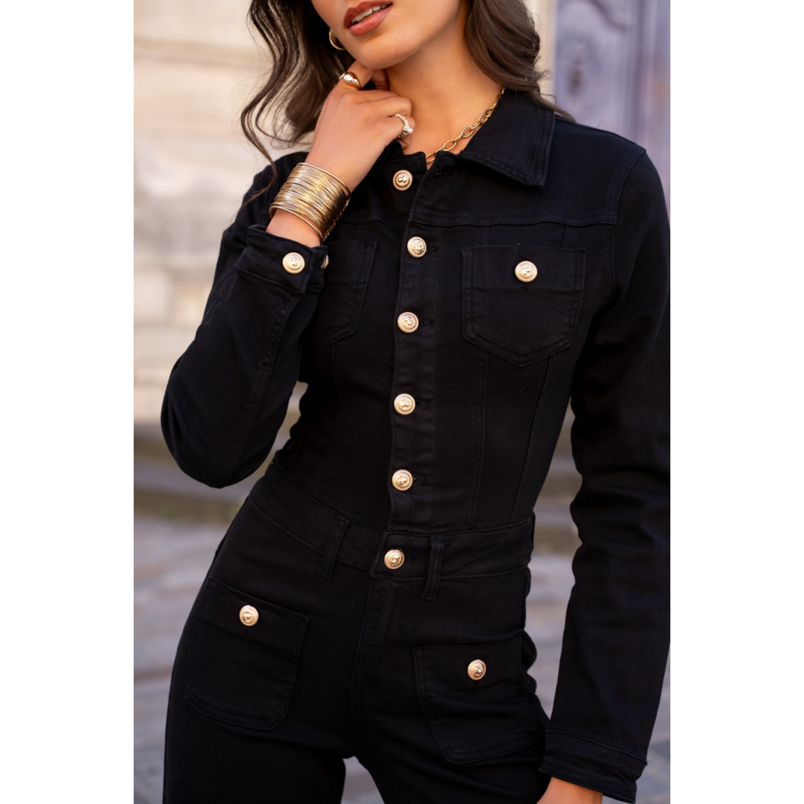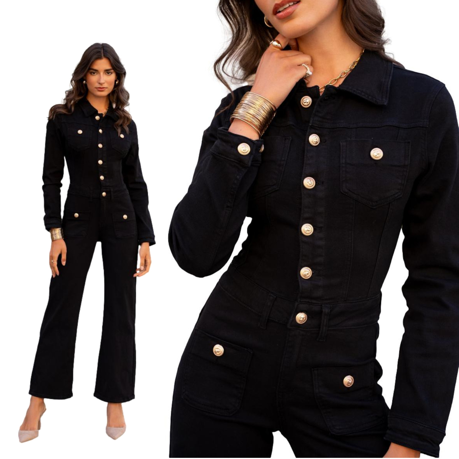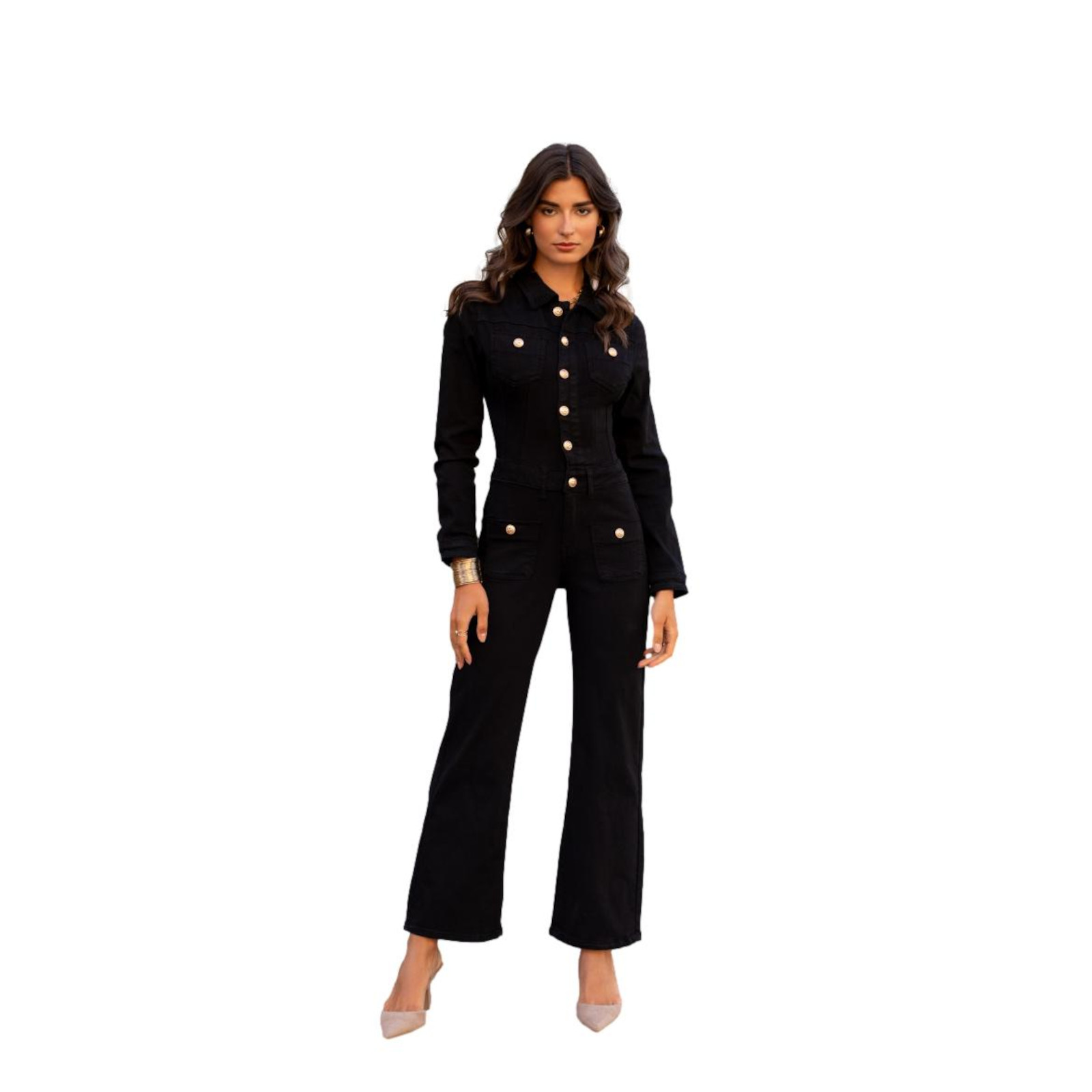 Tasche anteriori sul busto e pantalone con bottoni dorati