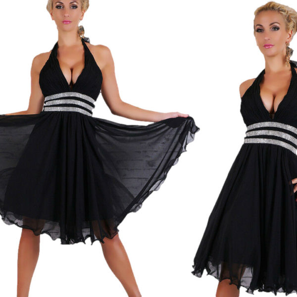 Abito svasato multicolore asimmetrico con volant all’orlo