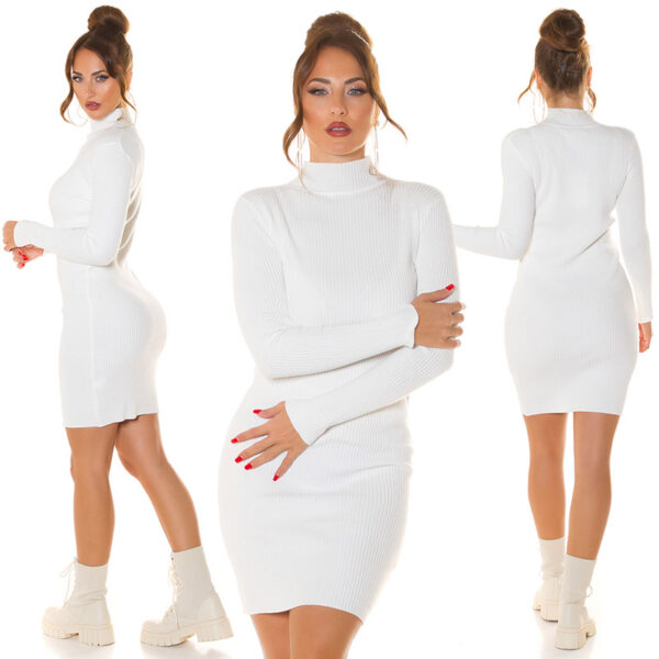 Abito in maglia donna colletto lupetto costine manica lunga elasticizzato