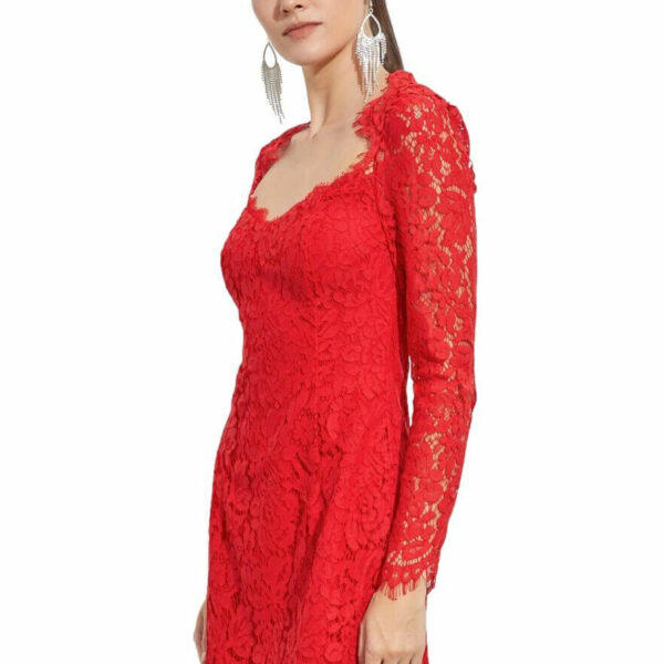 Abito corto vestito rosso donna in pizzo elegante sera scollo squadrato