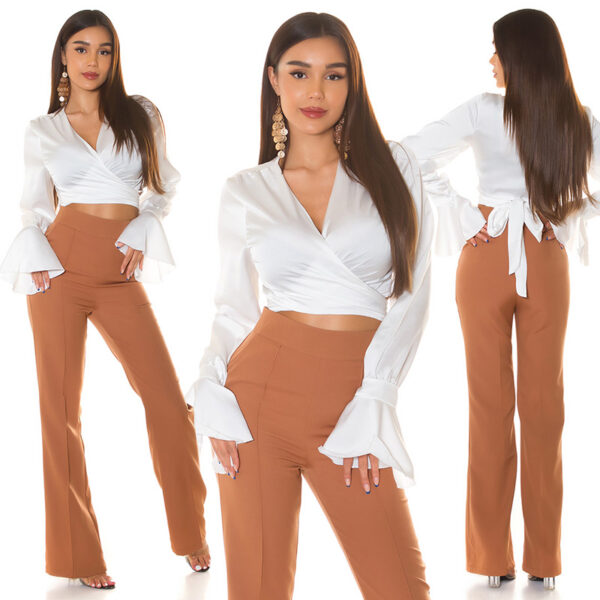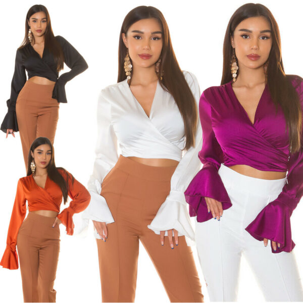 Blusa donna elegante crop portafoglio satinlook koucla effetto raso