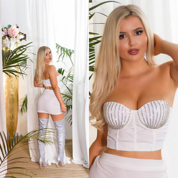 Top donna elegante raso con coppe di strass sexy regolabile