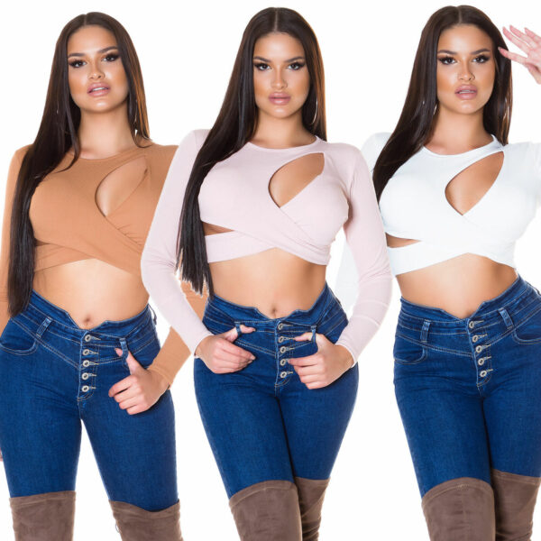 Sexy Crop Top Cut-Outs corto manica lunga girocollo