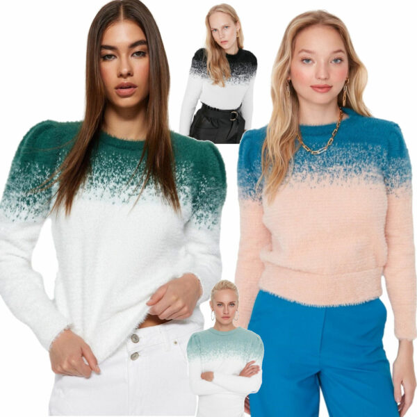 Maglione donna bicolore sfumato fluffy morbido manica lunga sbuffo