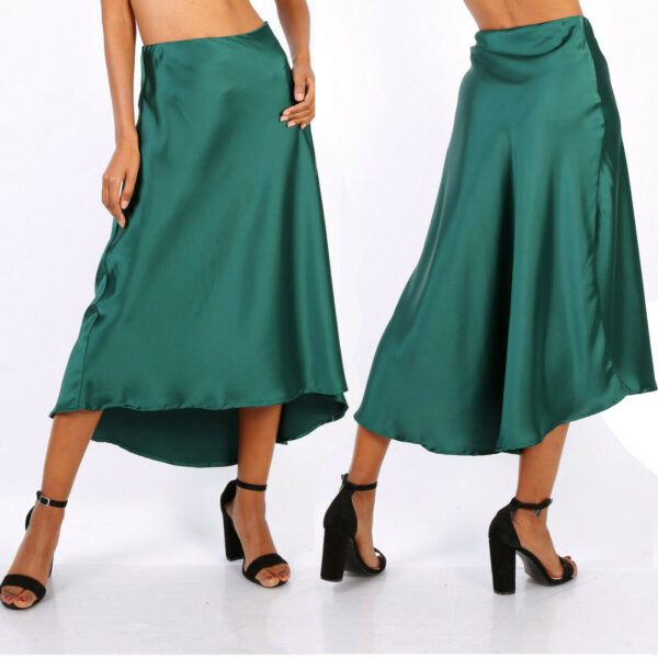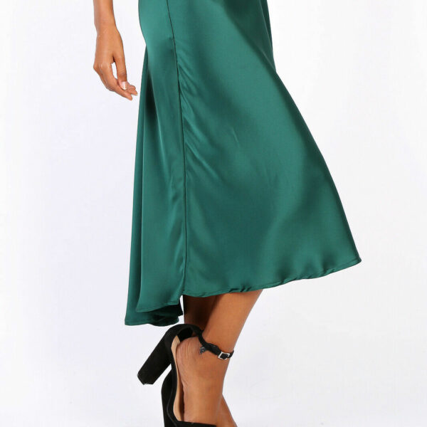 Gonna svasata asimmetrica longuette verde lucida raso sera cerimonia