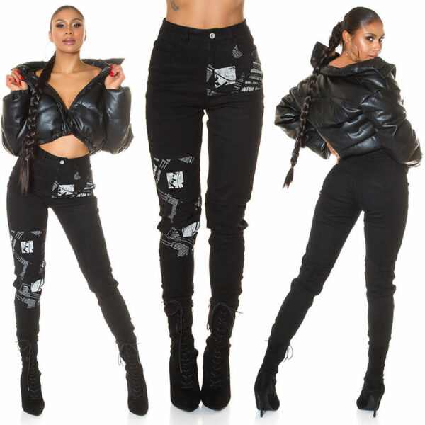 Trendy Highwaist Jeans with Print donna vita alta nero stampato