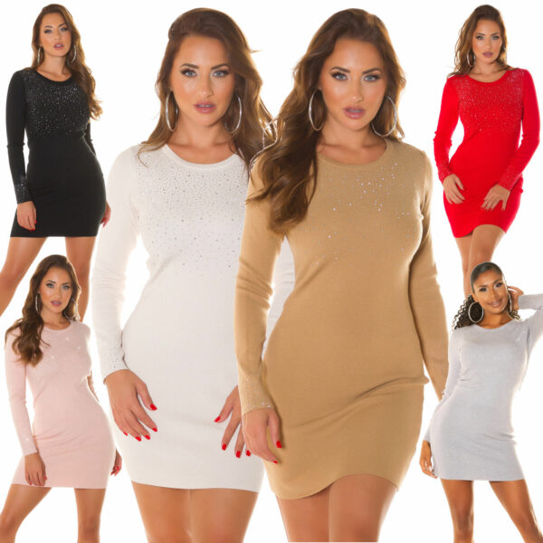Abito in maglia donna girocollo strass manica lunga elasticizzato