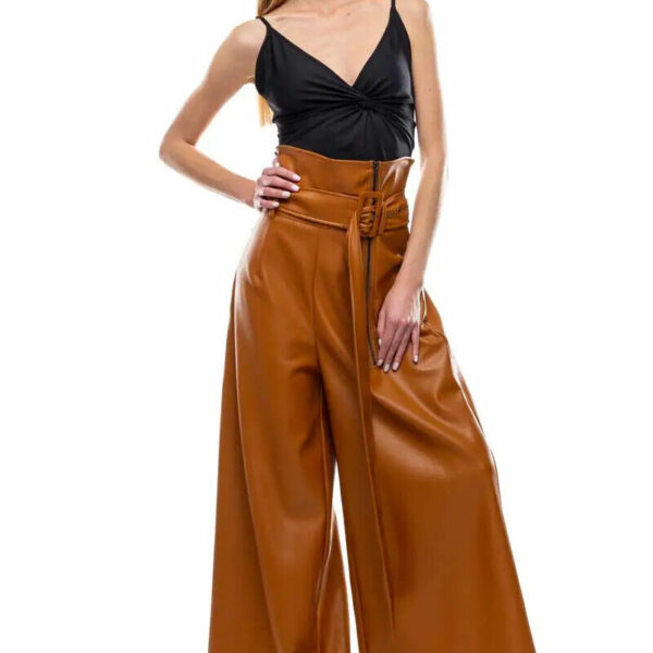 Pantaloni donna in ecopelle pelle vegana a vita alta zip palazzo termico