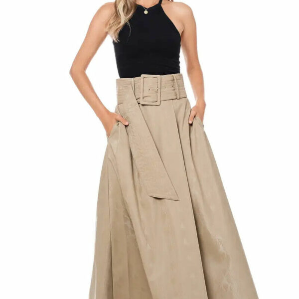 Gonna lunga in ecopelle pelle vegana svasata portafoglio con cintura alta
