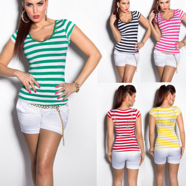 T-shirt maglietta donna manica corta fiocchi schiena aperta righe