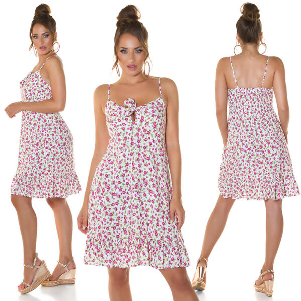 Mini abito donna floreale con nodo trendy ginocchio svasato spalline sottili