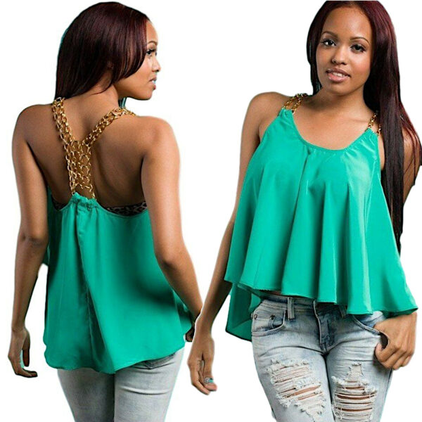 Top Ruota svasato donna maglietta verde smeraldo catena oro elegante