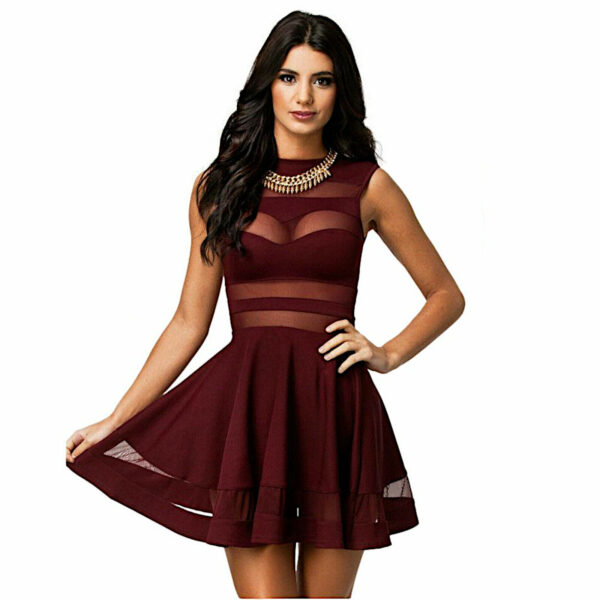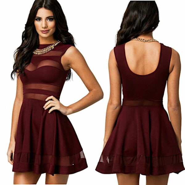 Mini abito donna inserti trasparenti smanicato skater svasato